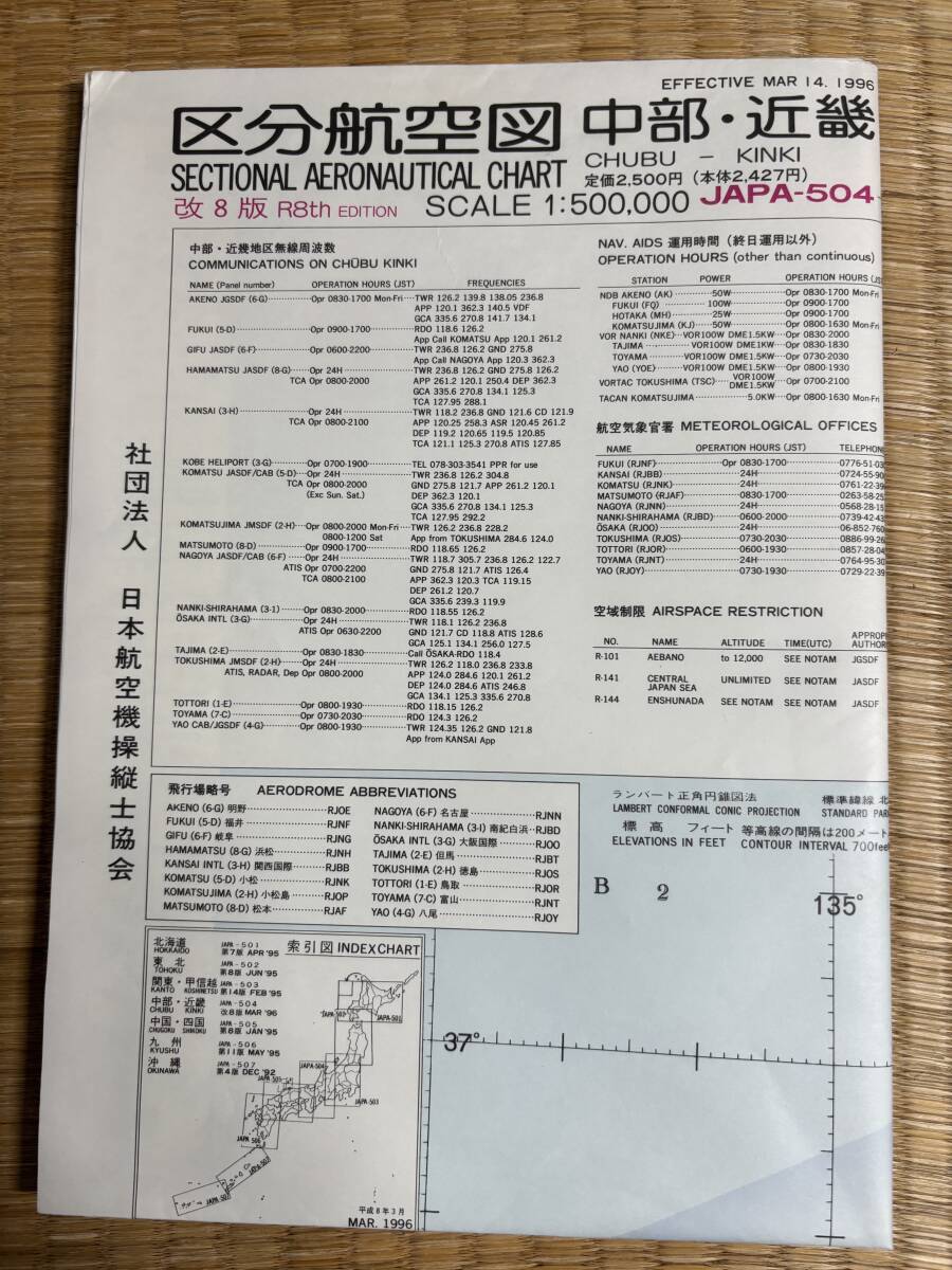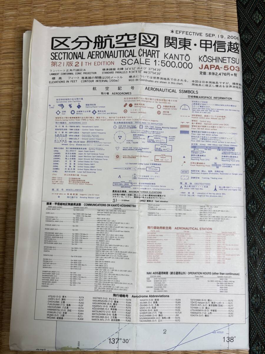 航空図1:500、000 北海道 東北 関東甲信越 中部近畿 中国四国の