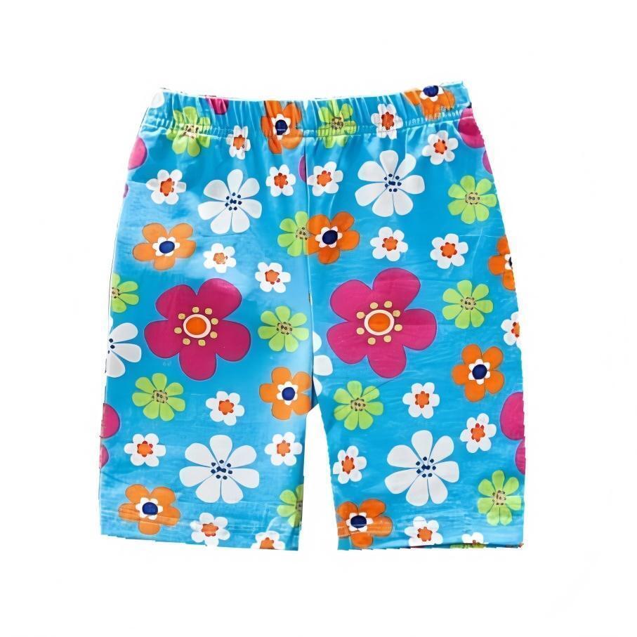 - ボトムスは全面にカラフルなお花柄がプリントされた爽やかなブルーベースのデザインです。