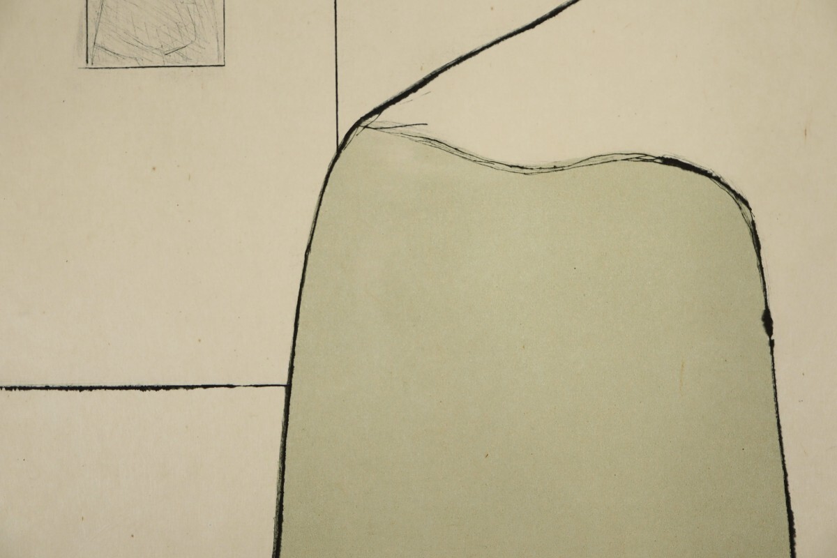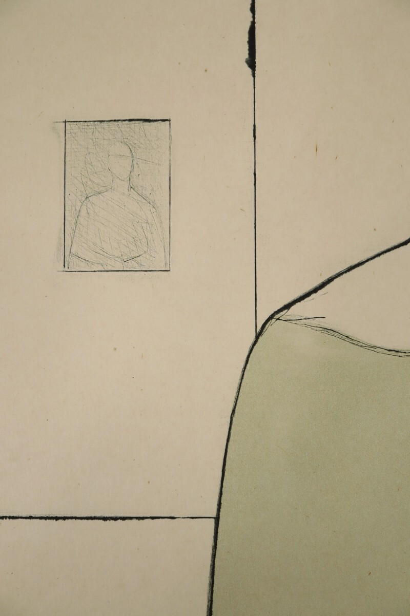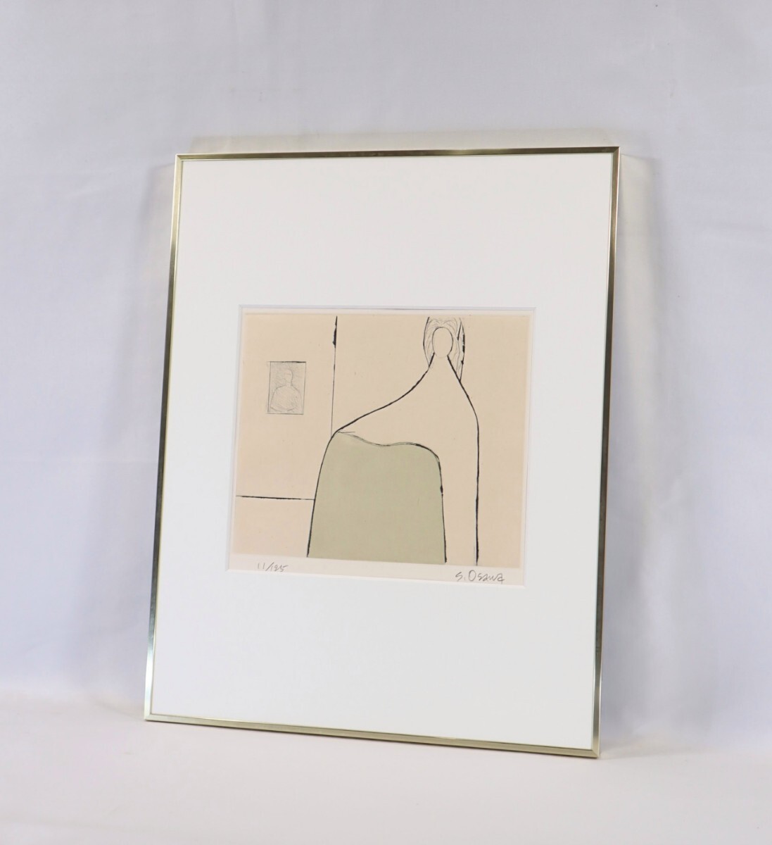 真作 大沢昌助 1978年 銅版画「花の日」画寸25×21.5cm 東京都出身 多摩美術大学教授 簡潔な線に明快な色面と大胆な構図の斬新な作品 11191