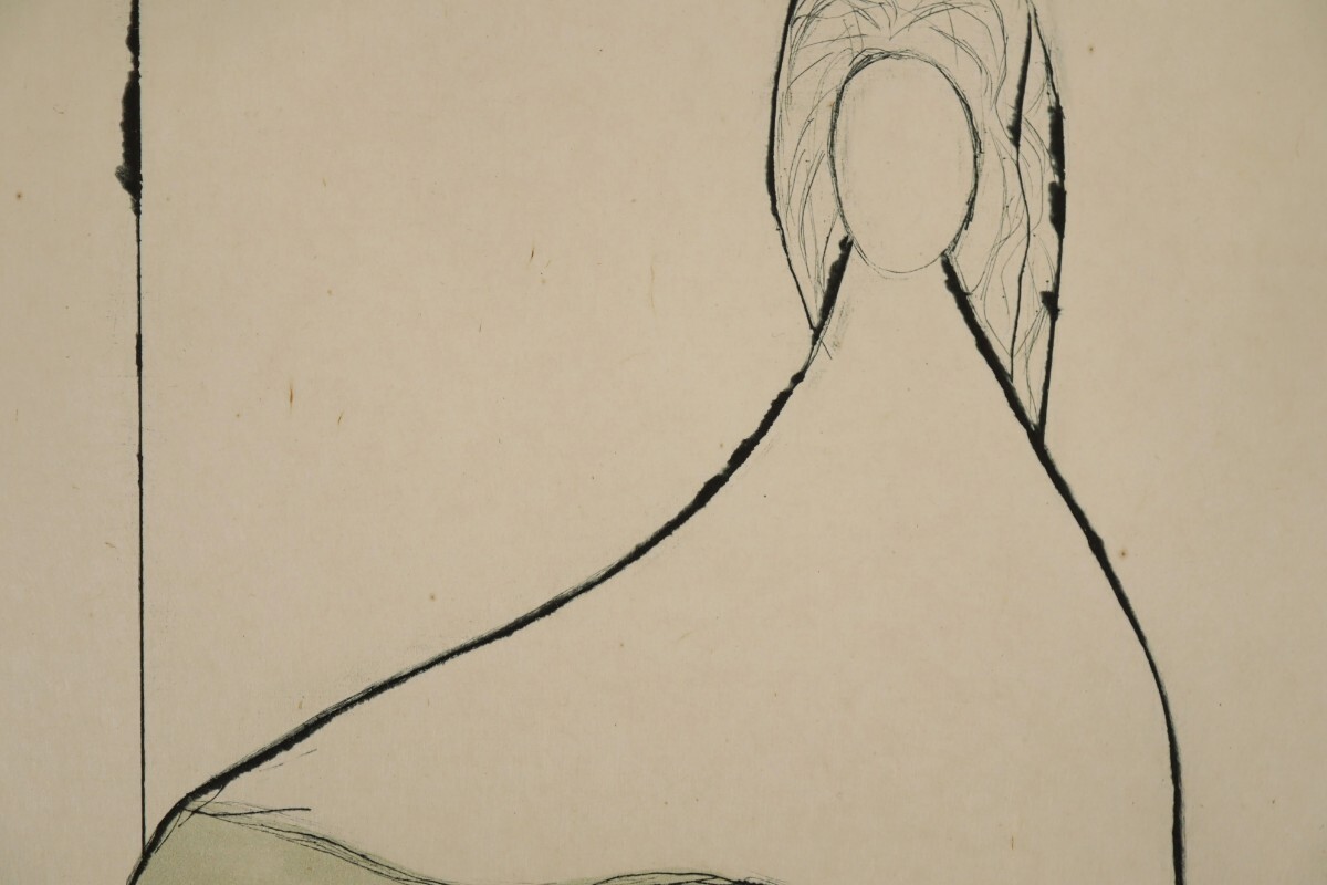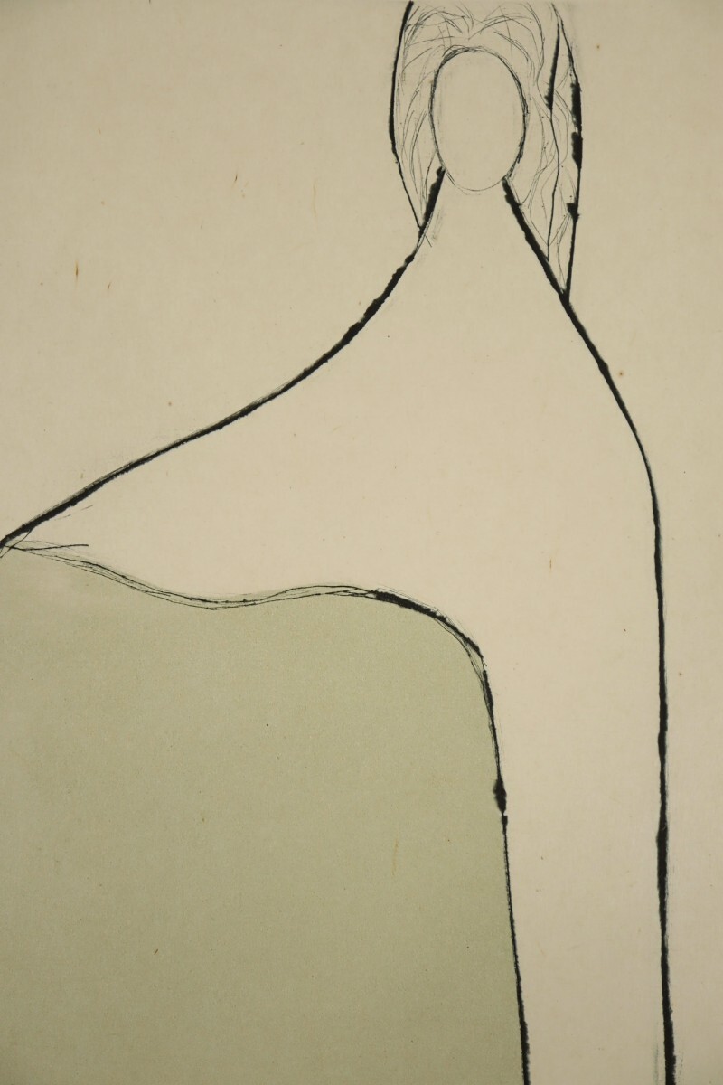 シンプルな線と控えめな色彩が、女性の表情や姿勢に
