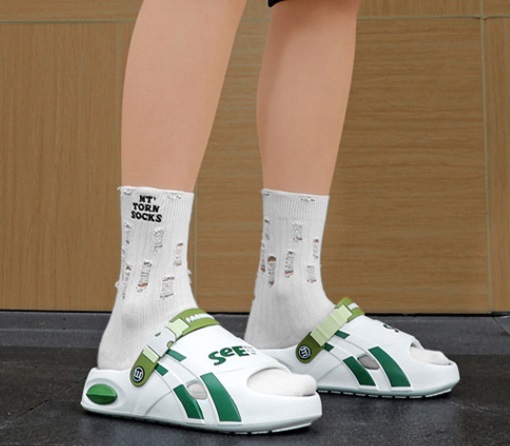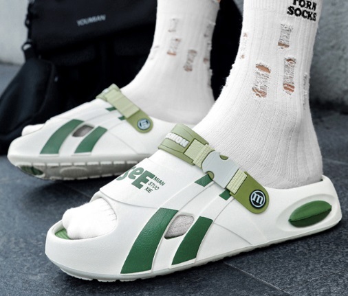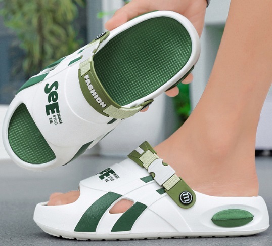 夏新品 2waysオシャレスリッパ メンズ ビーチ リゾートサンダル 防滑 通気 厚底 白緑/27-27.5cm
