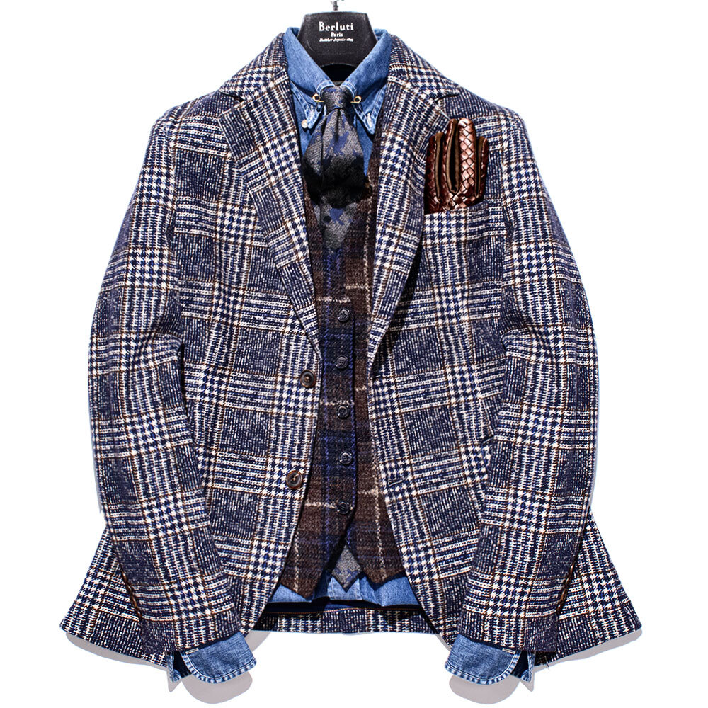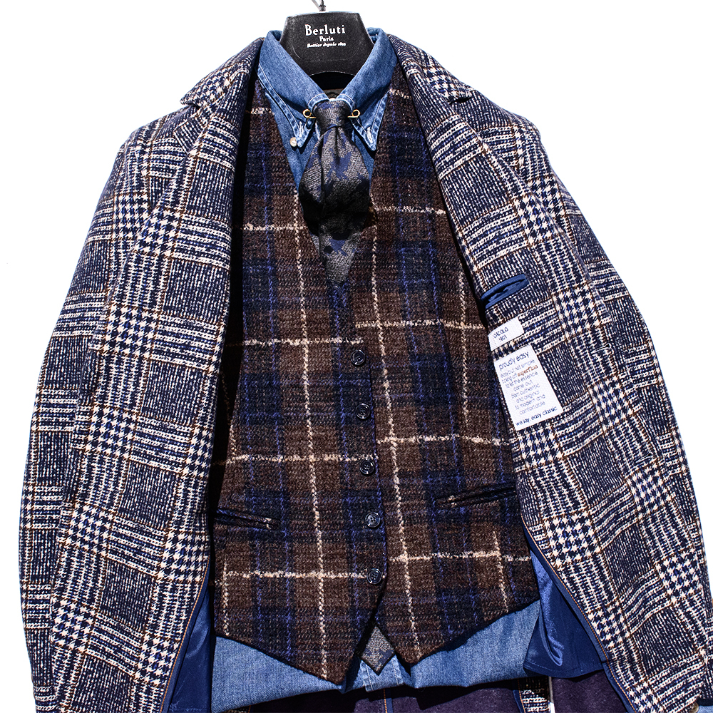 見た目はタータンチェックのツイードさながら、着心地は超快適。