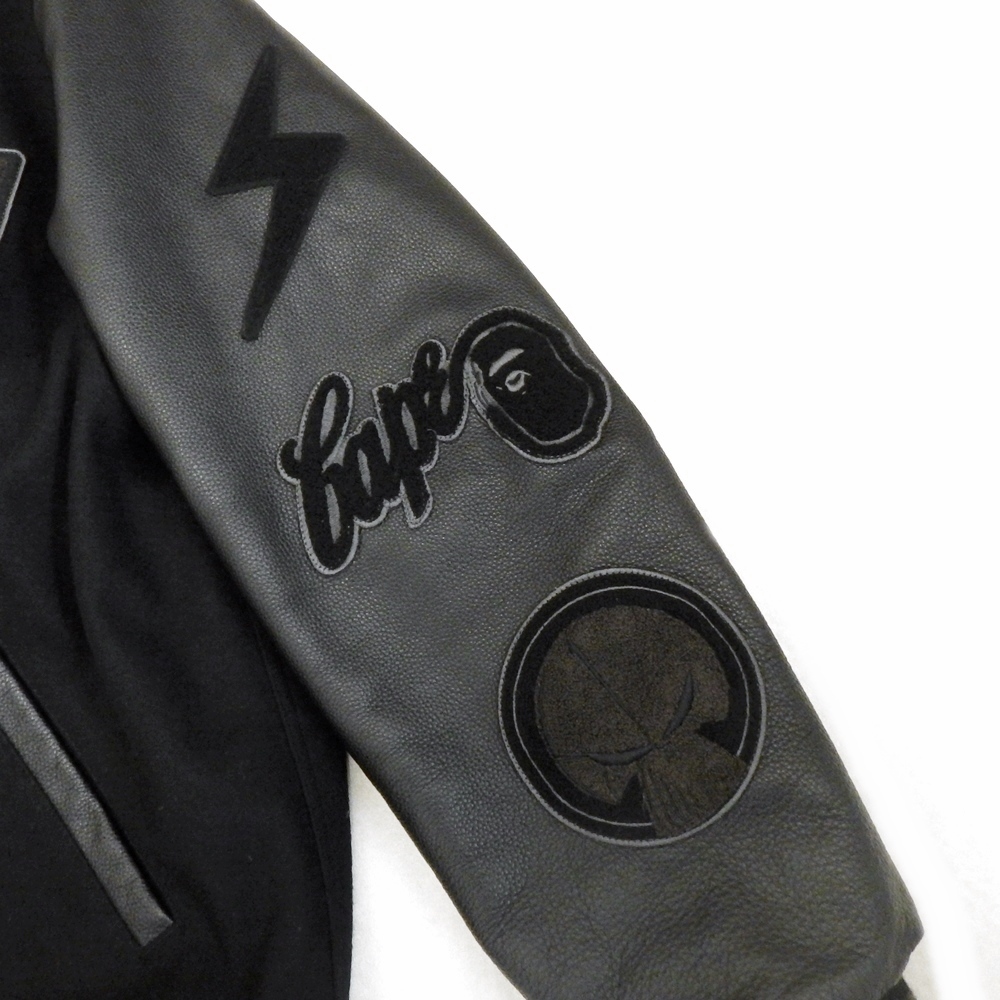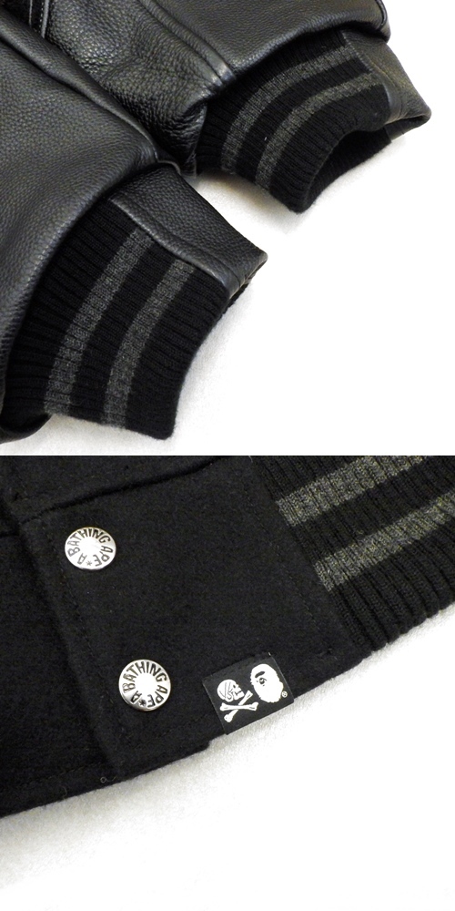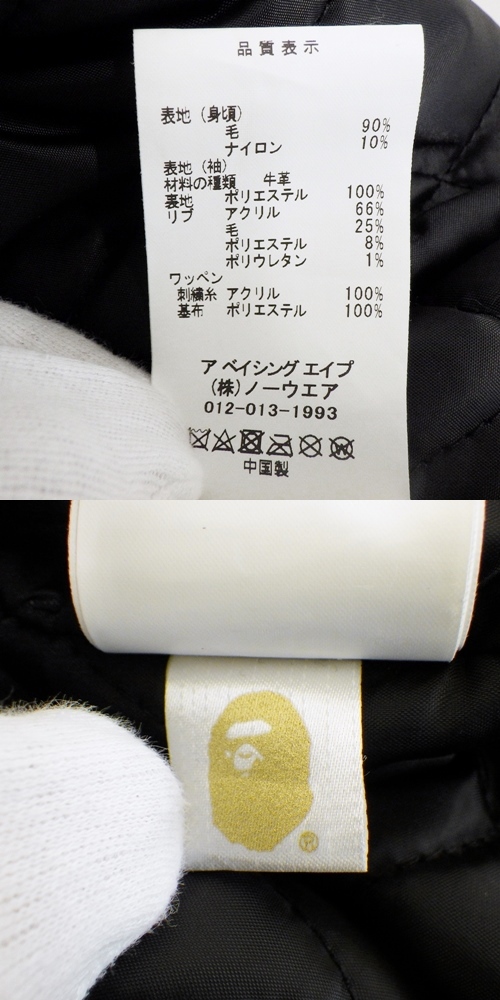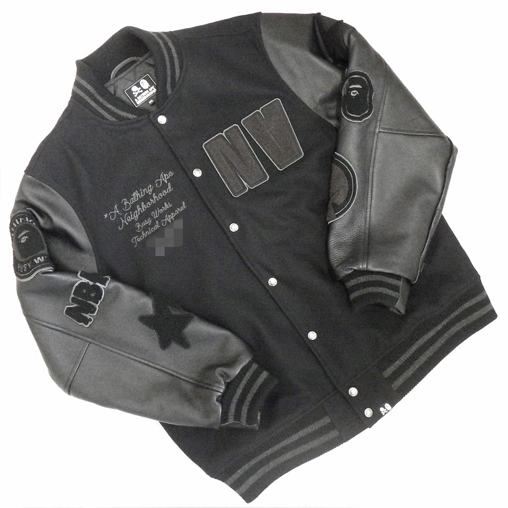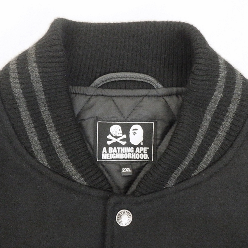 C25-1294 【エイプ×ネイバーフッド】50着限定品 スタジャン 2XL ナンバリング入り APE × NEIGHBORHOOD レザー メルトン ジャケット