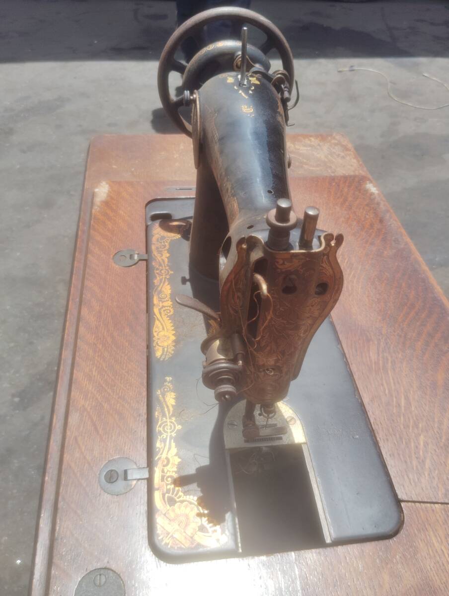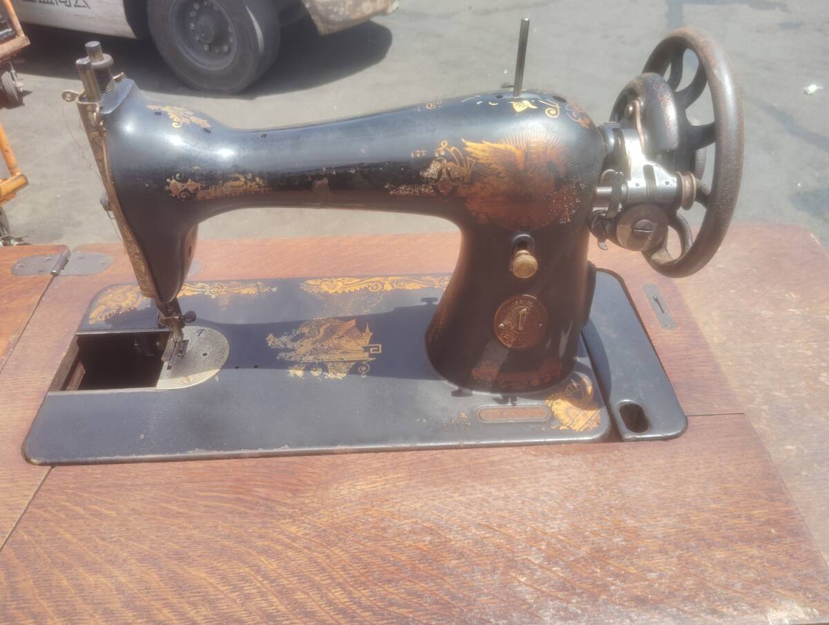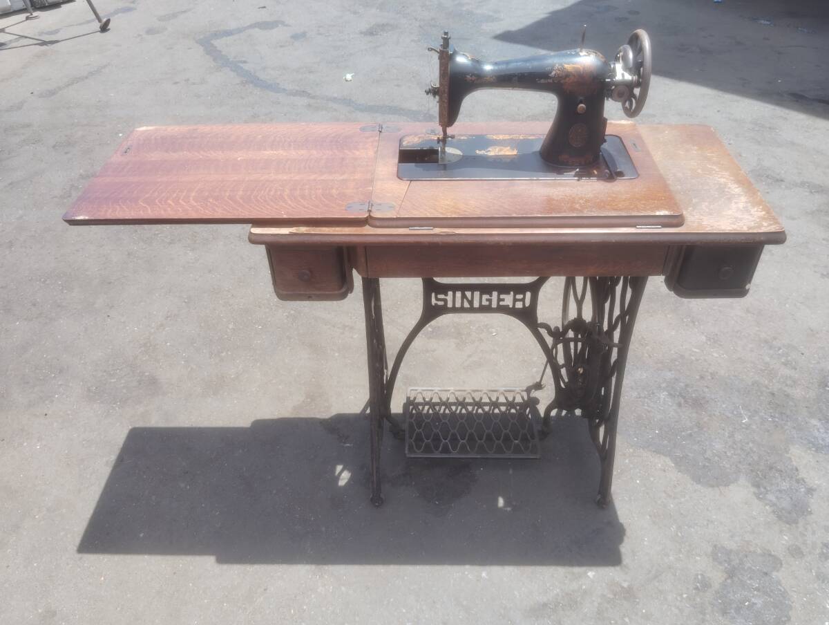 シンガーの足踏みミシンになります。