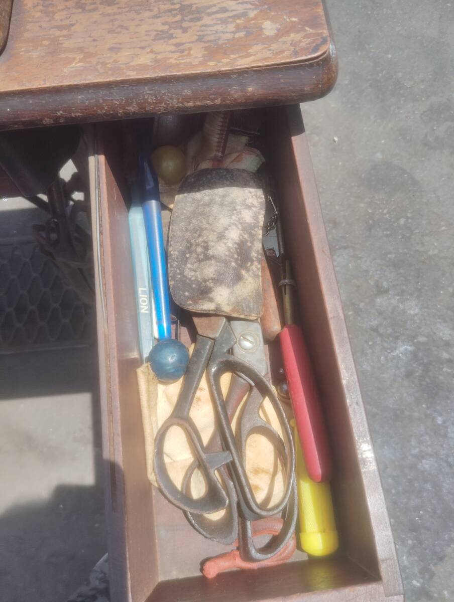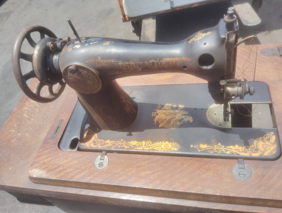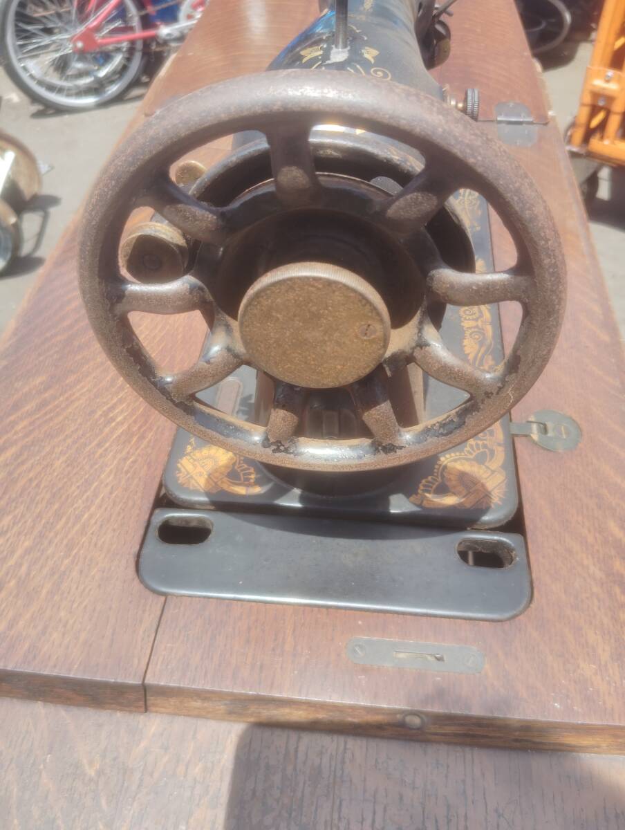 シンガーの足踏みミシンになります。