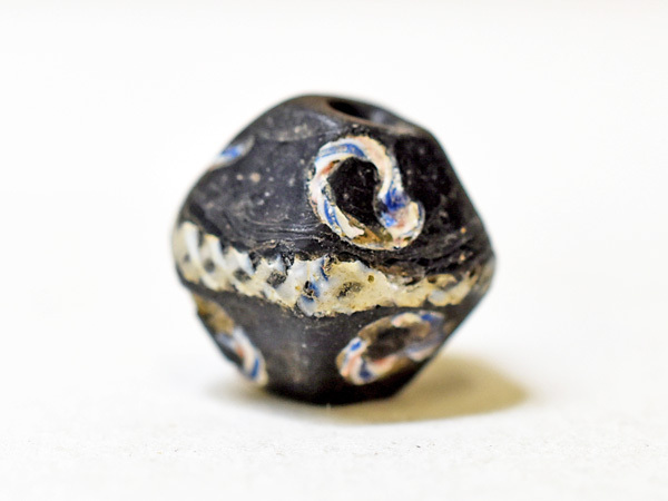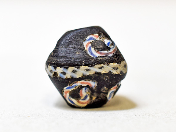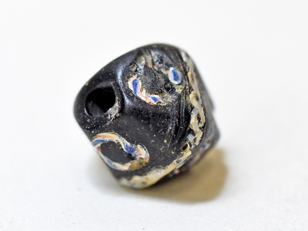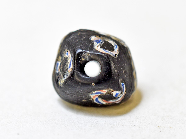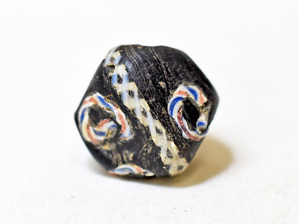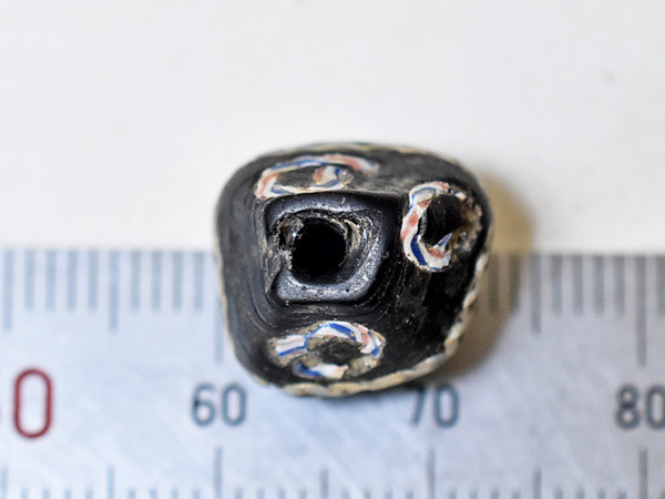 ヴェネチア産のアンティークガラスビーズです。両面四角錐という大変珍しい形状と美しい装飾を持つファンシービーズです。模様の一部に摩耗が見られますが、割れや欠け等の大きな傷みはありません。