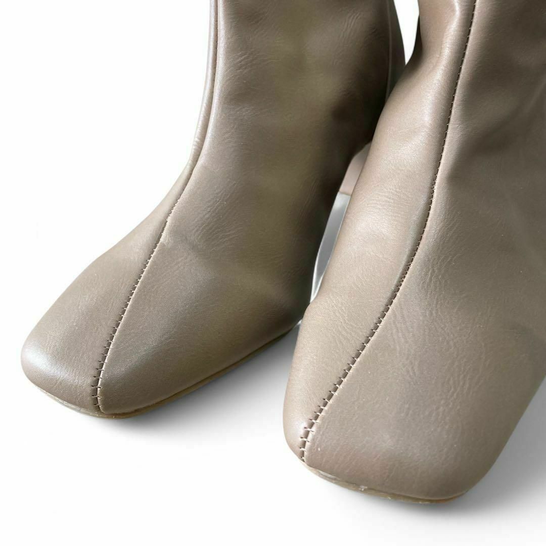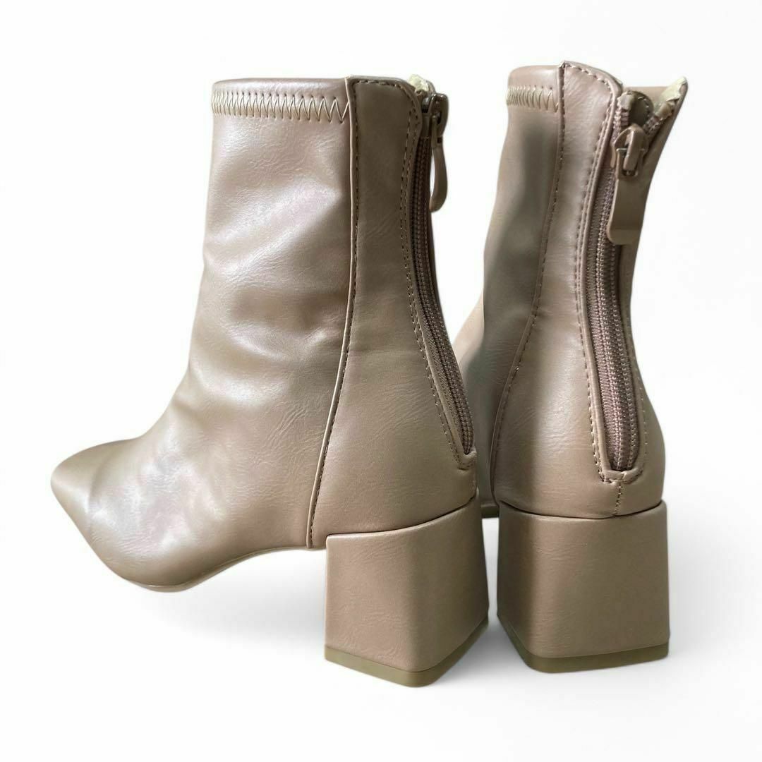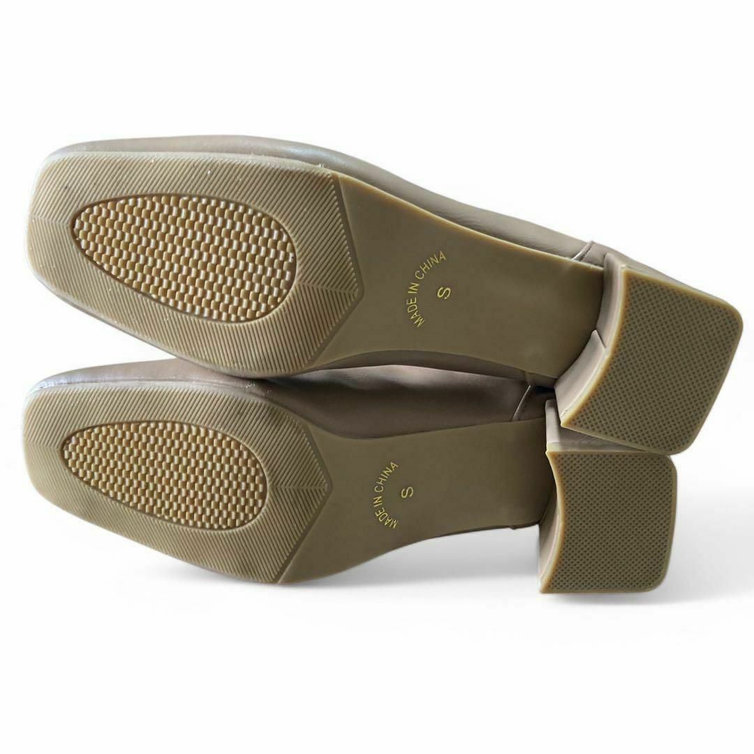 ブロックヒールとスクエアトゥの組み合わせで、トレンド感のあるシャープな印象に仕上げています。