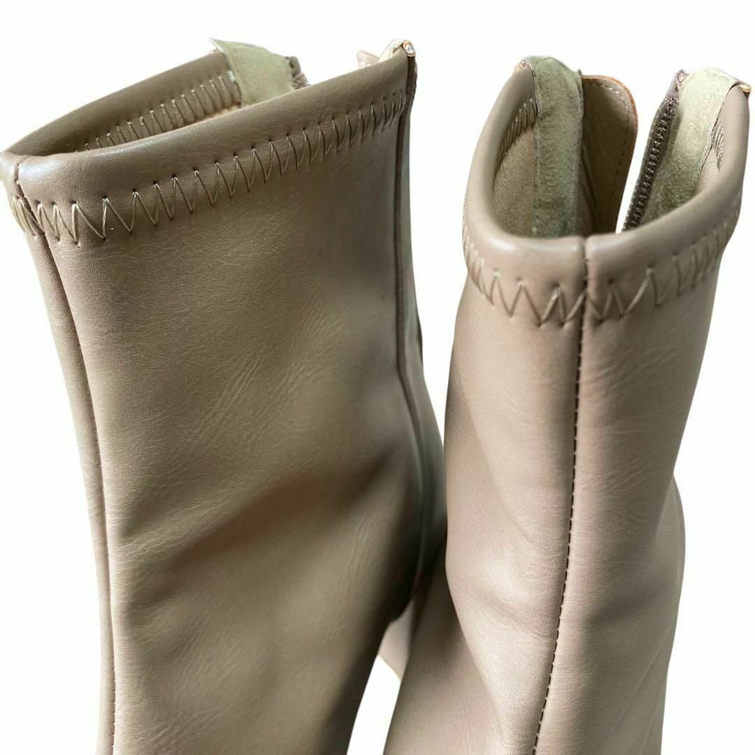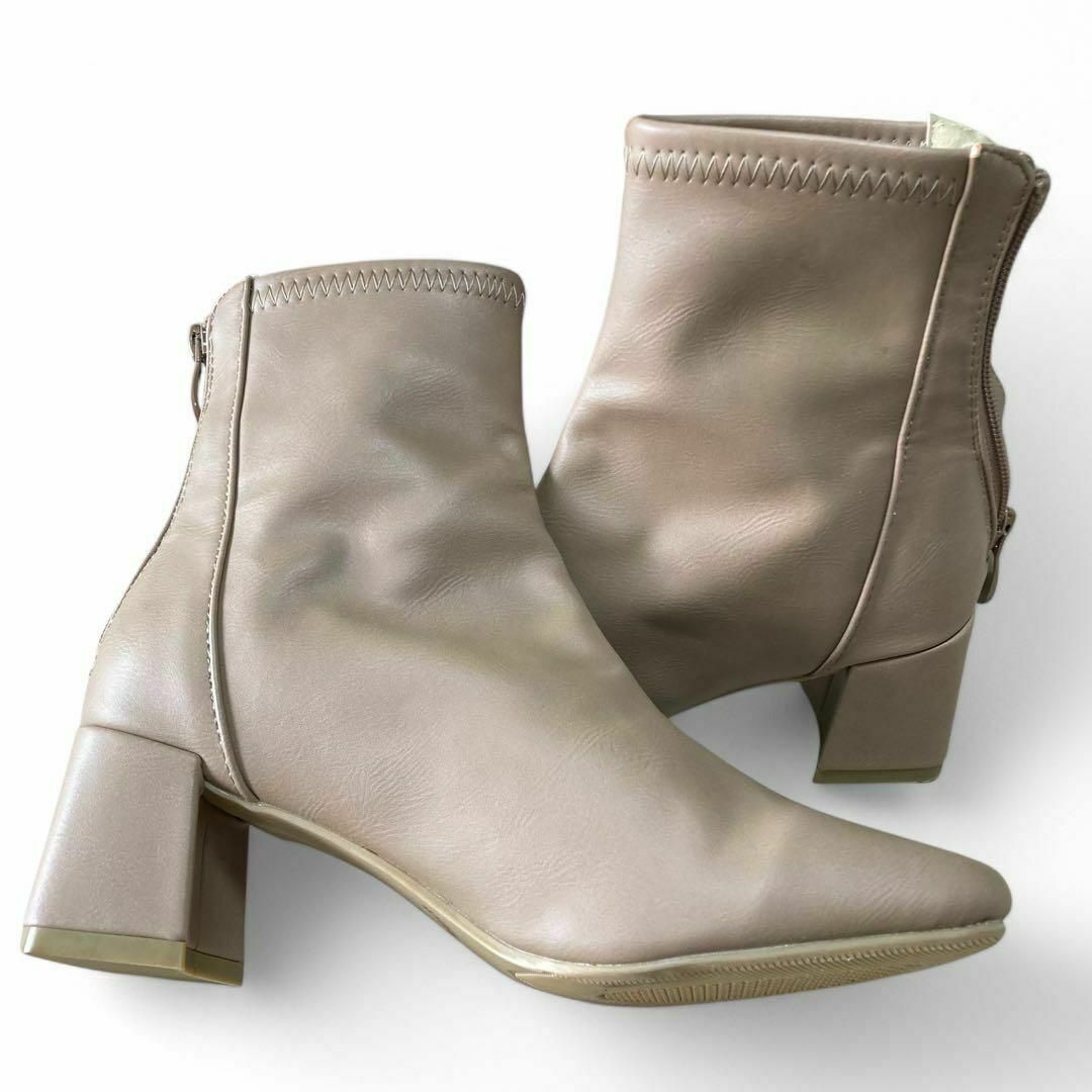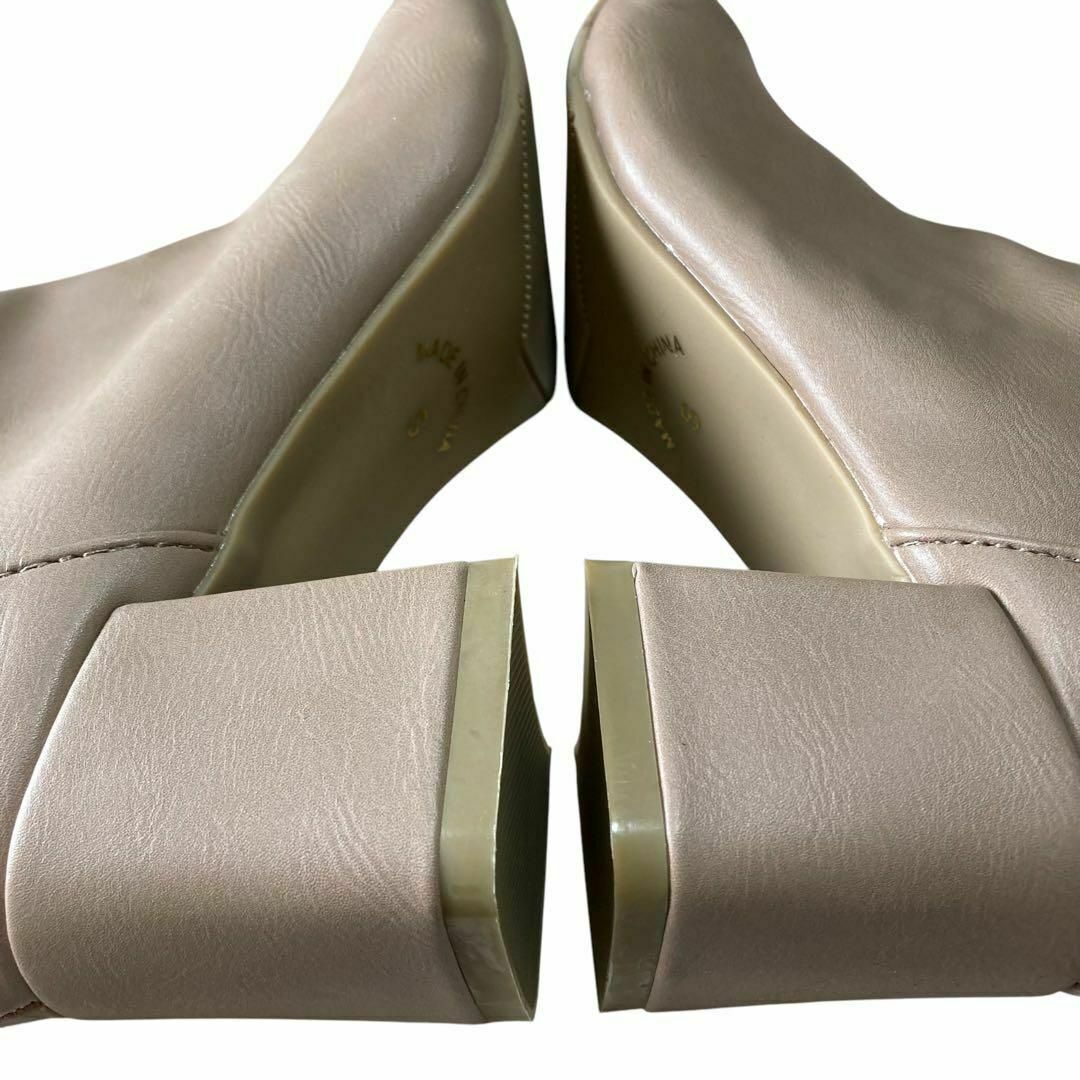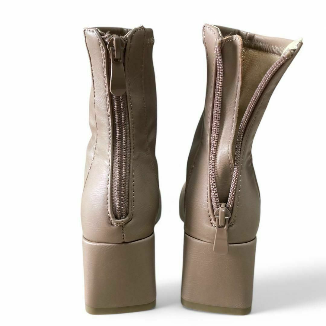 ブロックヒールとスクエアトゥの組み合わせで、トレンド感のあるシャープな印象に仕上げています。