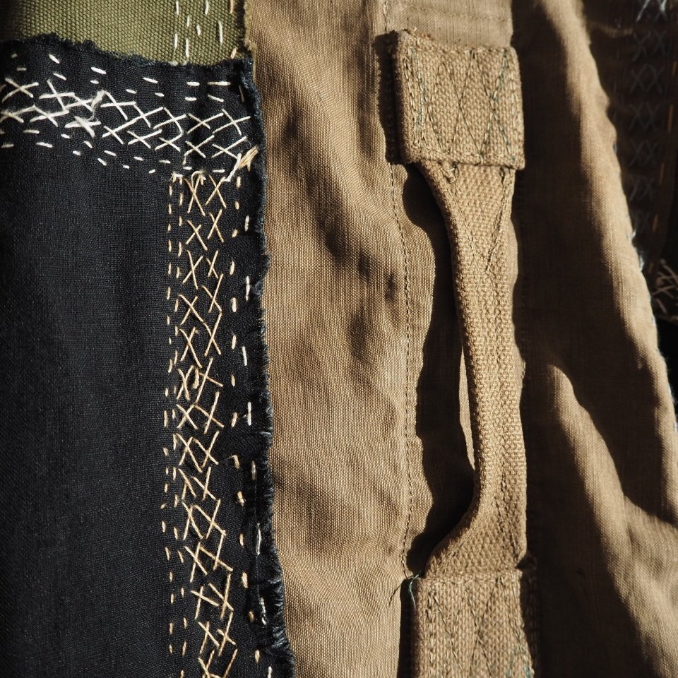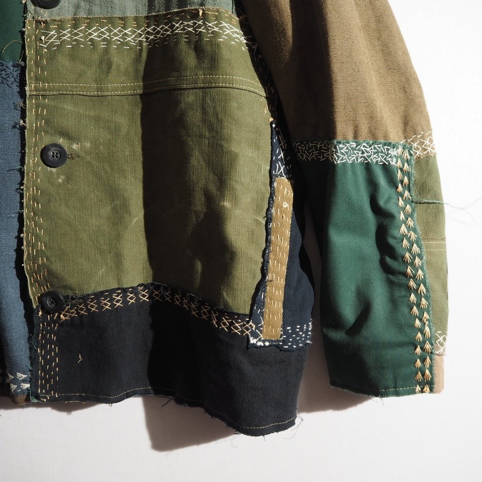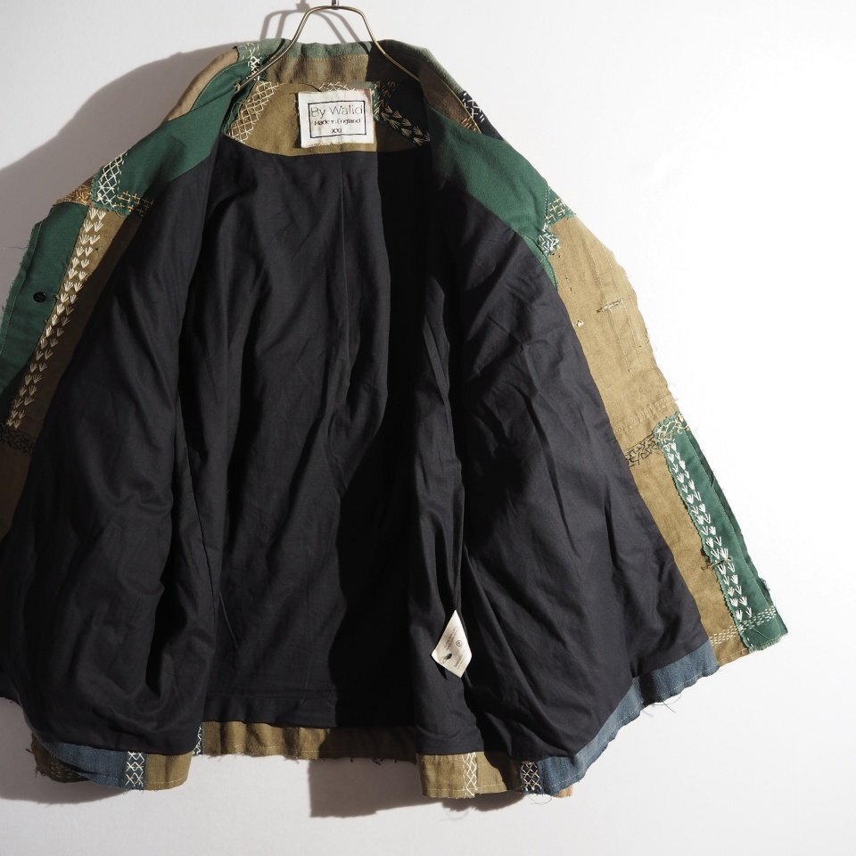 C2811P ▼By Walid バイワリッド▼ リネン ハリージャケット カーキ XXL / リメイク 再構築 刺し子 パッチワーク 春秋 rb mks