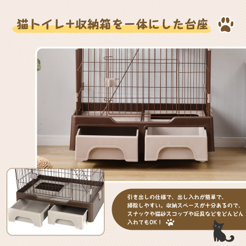 猫 ケージ キャットケージ 2段 猫トイレ付 キャスター付 ハンモック付 猫ゲージ おしゃれ キャットハウス ネコ ハウス 多段 留守番