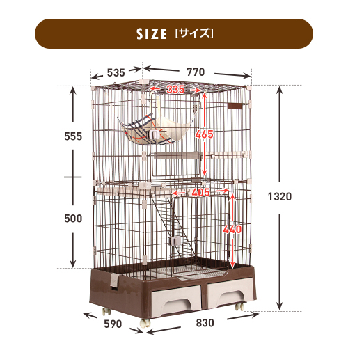 多頭飼いさんにも便利に使える余裕サイズ、広々とした空間で自由自在。