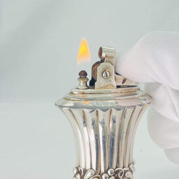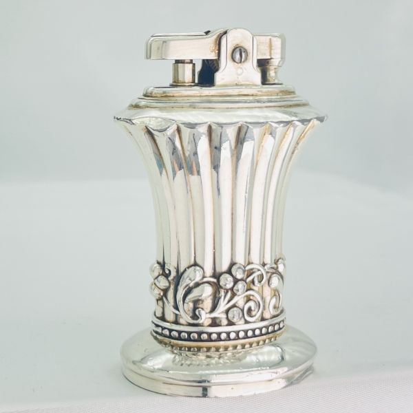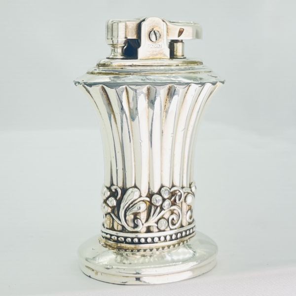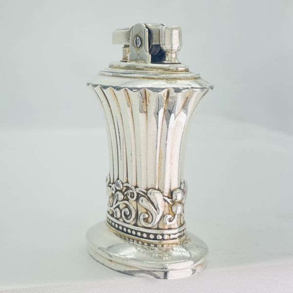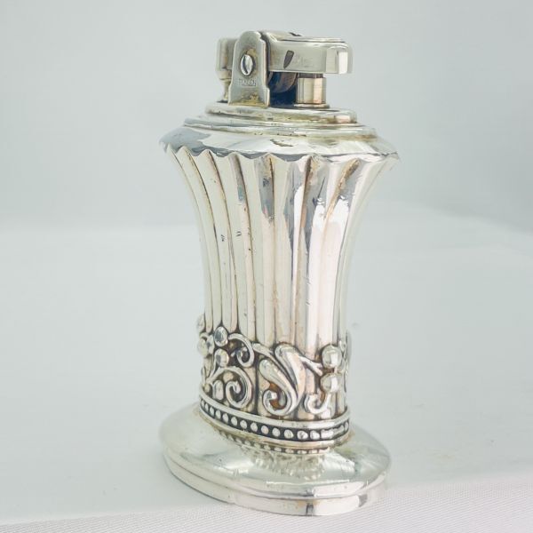 高級さを感じさせる重厚感とシルバーの輝きが印象的な年代物のロンソン NEWPORTの卓上オイルライターでメンテナンス整備済みですので直ぐに使用出来ます。