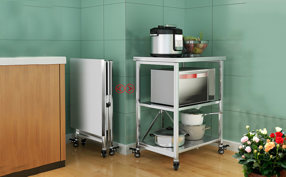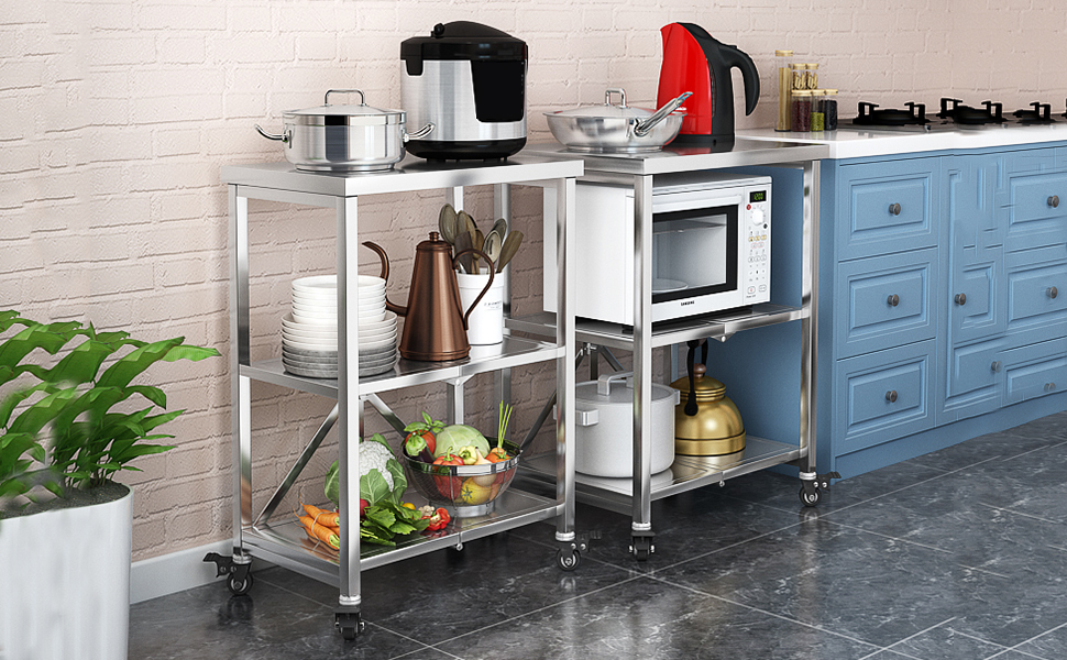 3層の貯蔵スペース、さまざまなアイテムの保管、すべて台所用品などのすべての種類のものを保管して並べ替えるための十分なスペースを提供します。野菜や果物。家や業務の使用に適しています。