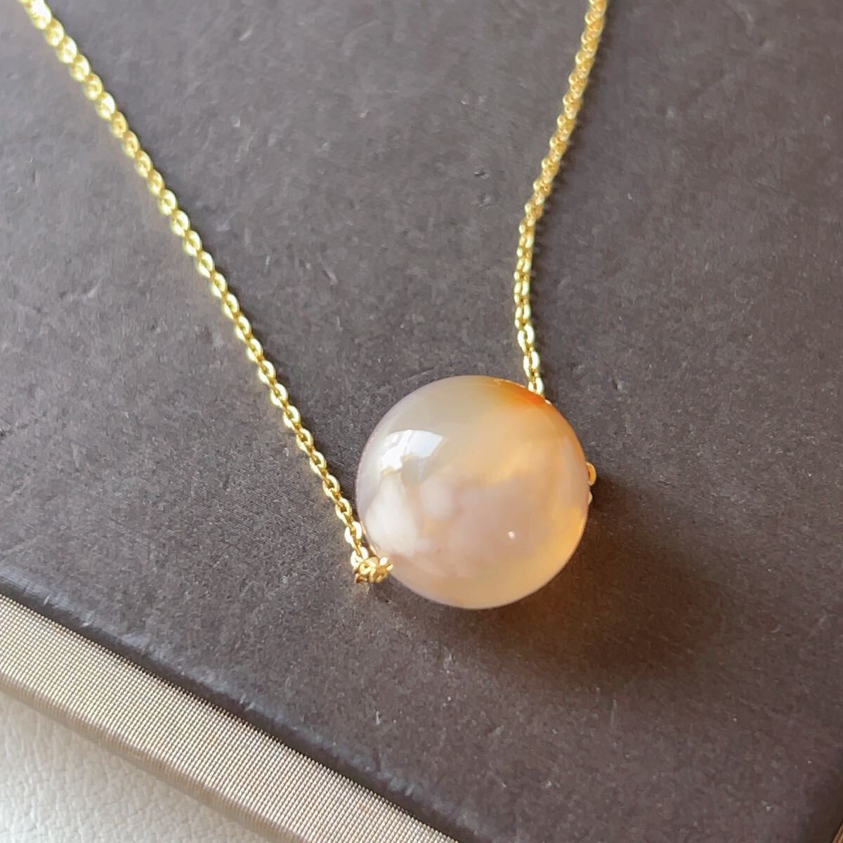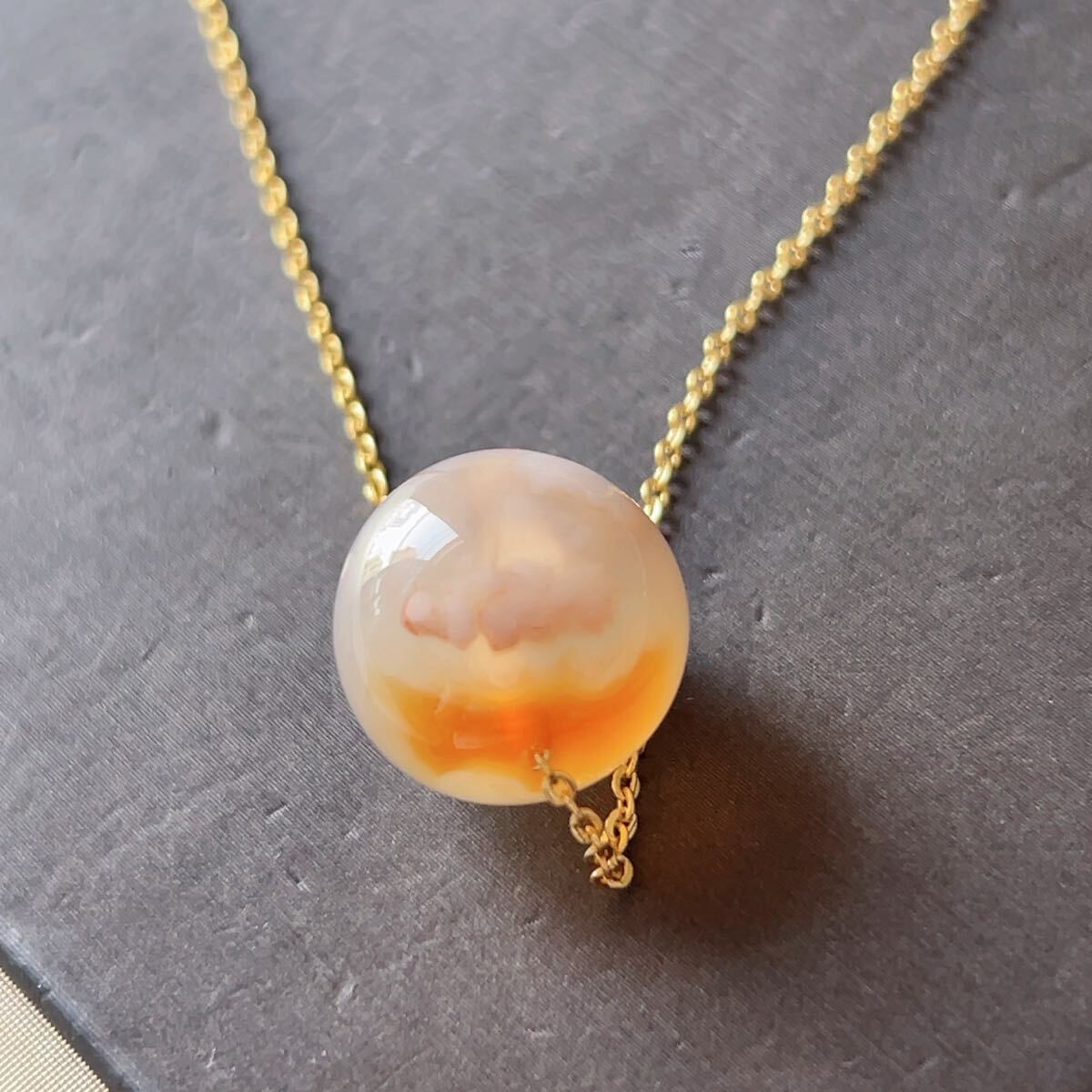 瑪瑙の中の内包物が桜の花びらのように見えることから、桜瑪瑙(チェリーブロッサムアゲート)と呼ばれています。