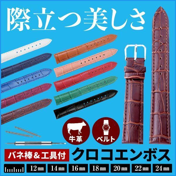 ※こちらは、ピンク 20mmのページになります。 [商品名] 牛革 クロコエンボス 腕時計ベルト メンズ レディース バネ棒外し&バネ棒2本付 [商品詳細] 牛革素材にクロコダイルのエンボス加工を施した交換用牛革時計ベルトになります。 リアルなクロコダイル模様を再現した素材が魅力のアイテムです。 男性・女性問わず、ご利用いただけます。 表地は牛革、裏地は合皮。 合皮は汗に強く、防水性に優れ、お手入れ簡単、手間要らず。 また、革アレルギーの一因である、原皮から加工過程で使用される薬品による心配もない為、かぶれにくい素材です。 手軽に交換出来るように、交換工具を付けました! ファッションコーディネートに合わせて、腕時計ベルトも着替えて欲しいから、お求めやすい価格にしました。 [素材] ベルト表面 : 牛革(クロコダイルエンボス) ベルト裏面 : 合成皮革 尾錠 : ステンレス [サイズ] 20mm [カラー] ピンク [内容品] ベルト × 1本 交換用バネ棒 × 2本 バネ棒外し工具 × 1本 [コンディション] 新品未使用品です。 [注意事項] ・サイズは生産時期によって、多少の誤差がございます。 ・ベルト交換に際し、時計本体や付属部品、またはベルトや工具等に破損等の問題 が生じましても当店では一切の責任を負いかねます。 自己責任の上、十分注意して作業を行って下さい。 ・製品は予告なく仕様を変更する場合がございます。 ・モニター・照明の都合上、実際の色味と多少異なる場合がございます。 予めご了承下さい。 [出品者よりお礼] この度は、私の出品商品を見ていただきありがとうございました。 それでは、気持ちの良い取引をお待ちしております。 |