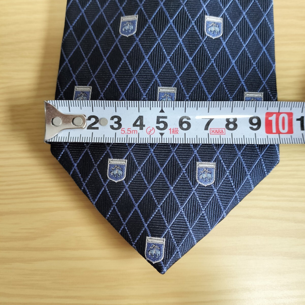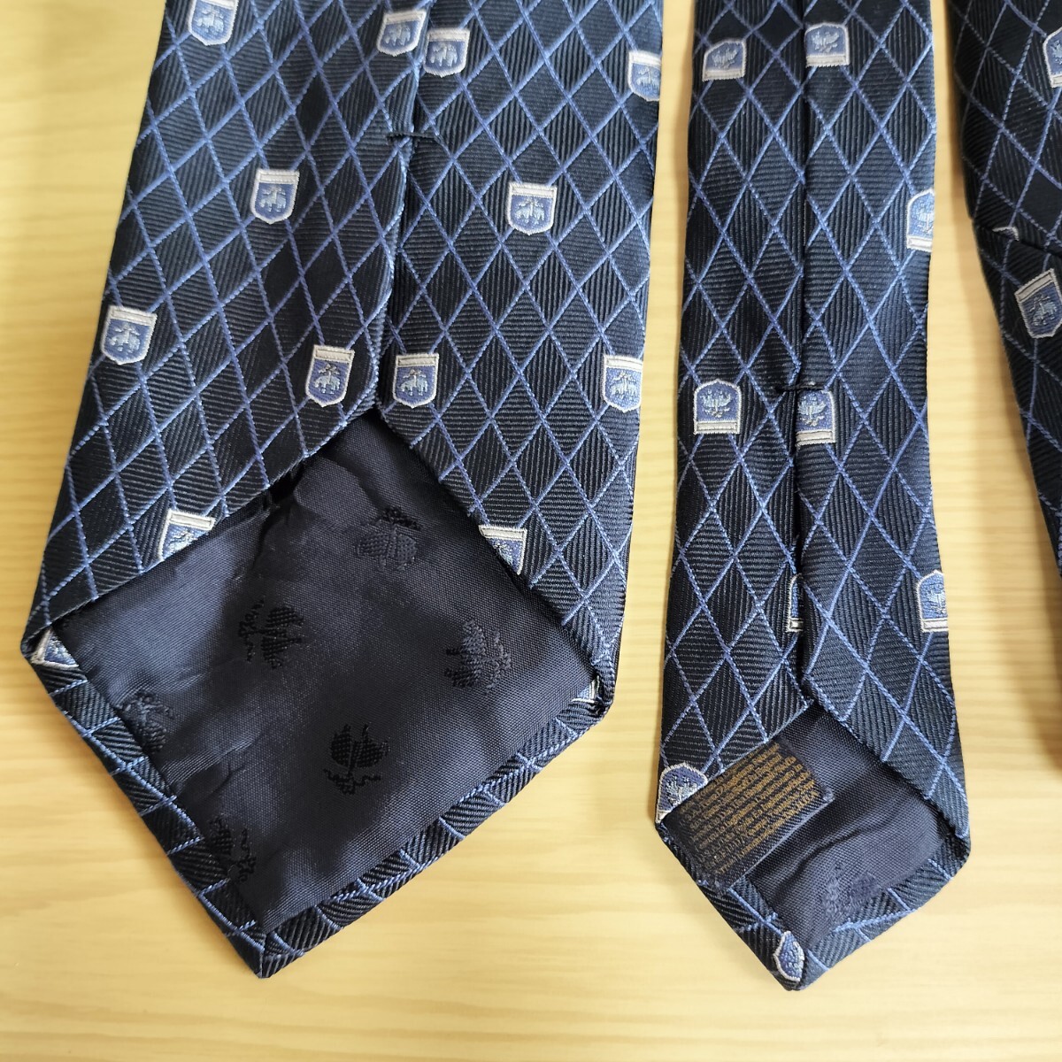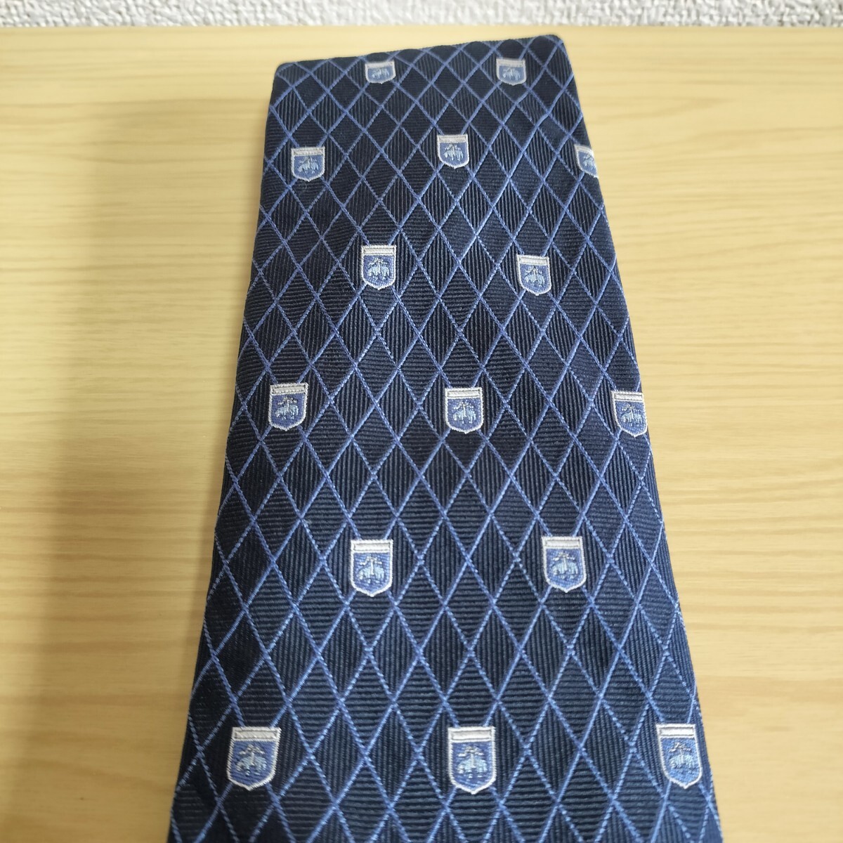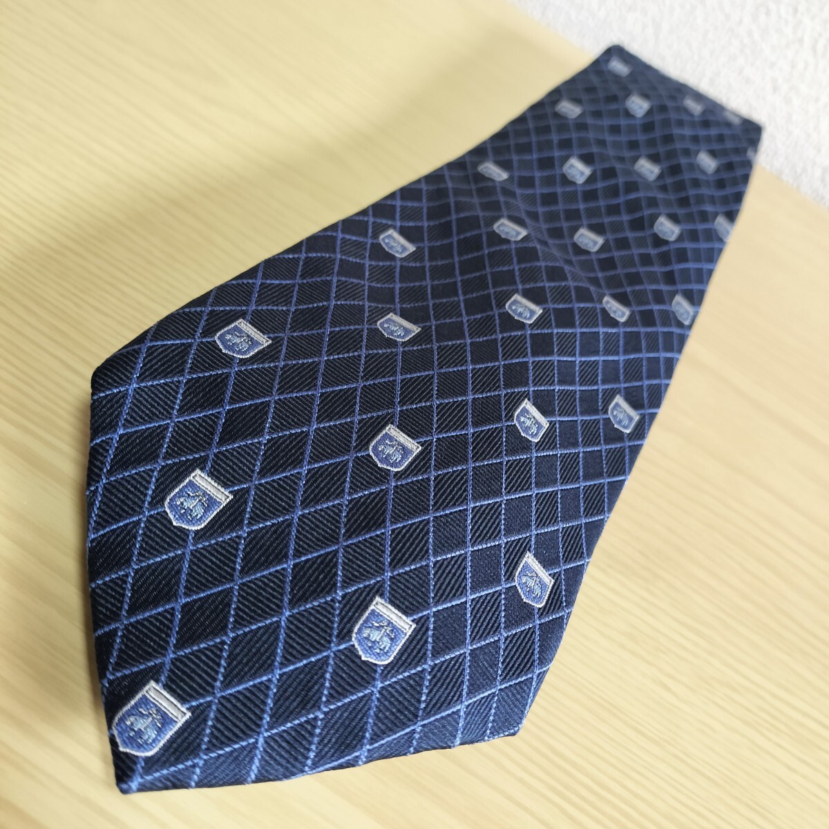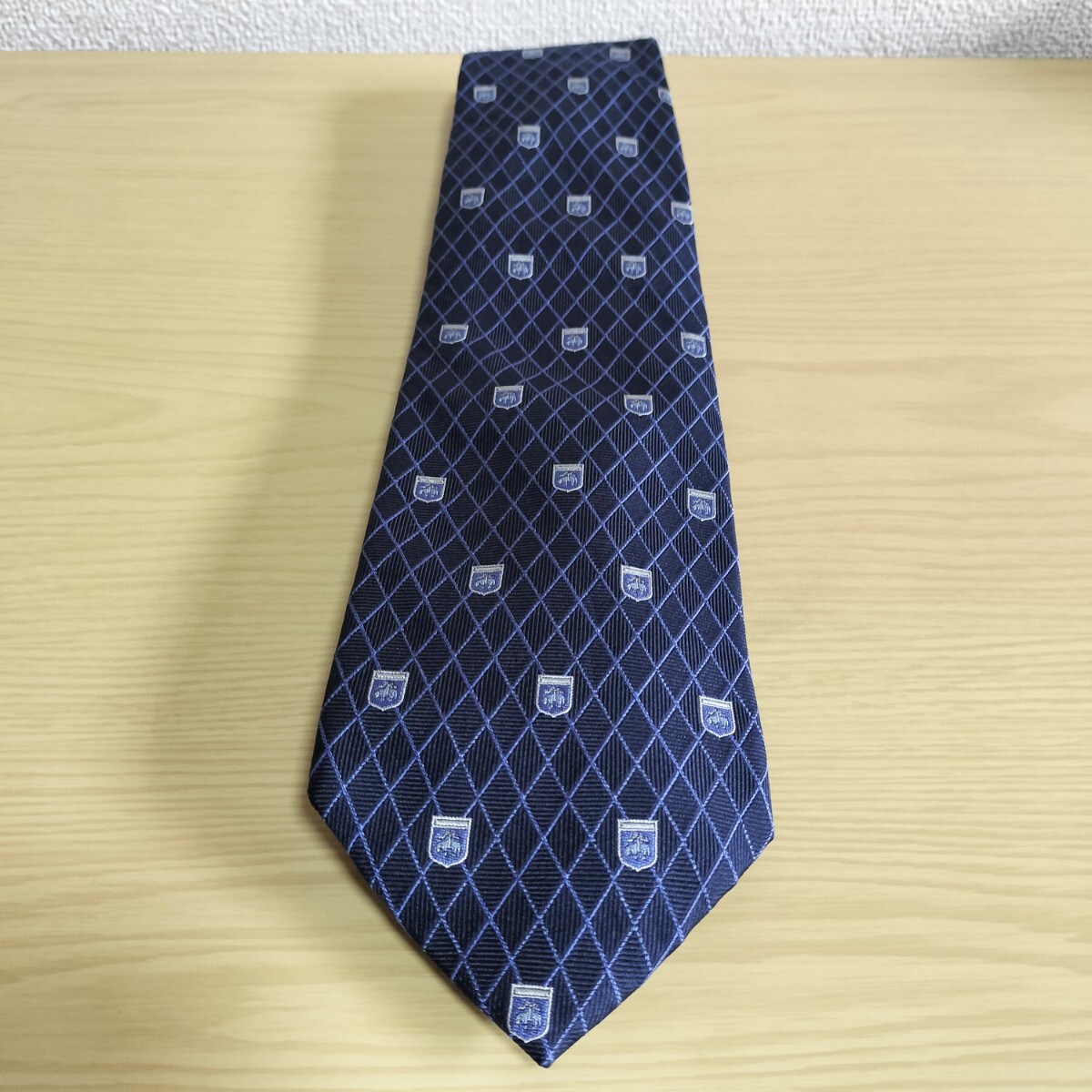 黒紺色ブランドロゴ紋章ダイヤ線模様ネクタイ