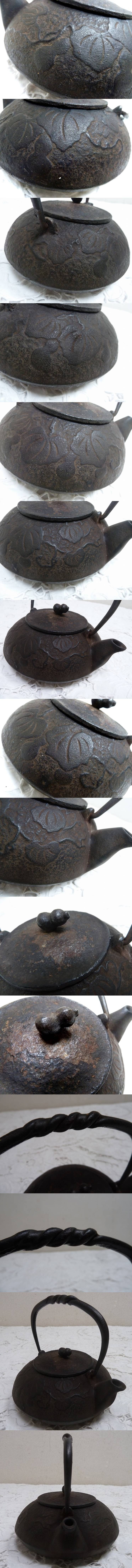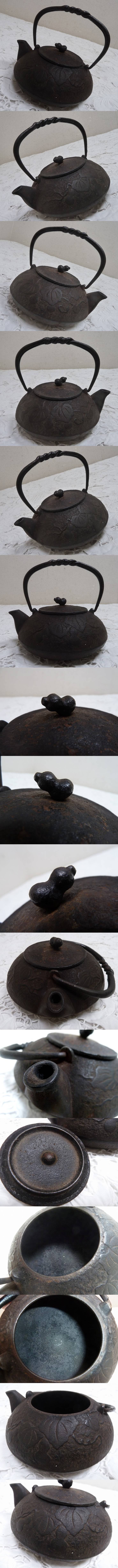 (☆BM)南部鉄器 鉄瓶 鉄製 茶瓶 瓢箪 ひょうたん柄 宝星堂/宮古堂 煎茶道具 急須 文捻提手平丸鉄瓶 茶器 鉄器 茶道具