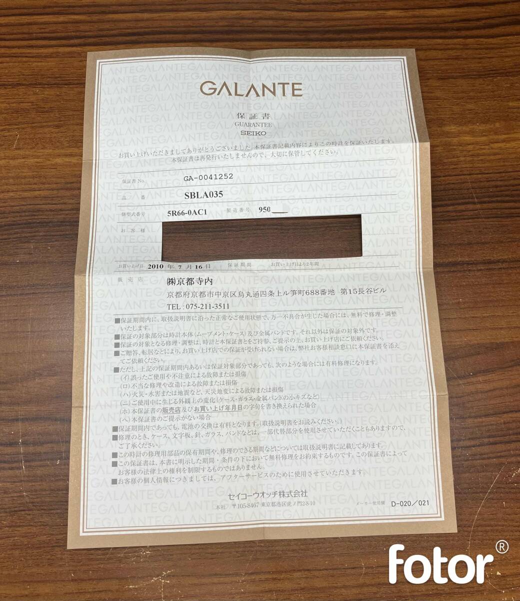 | 1万円以上3万円未満:3ヶ月間保証 3万円以上10万円未満:6ヶ月間保証 10万円以上:1年間保証 保証期間中の通常のご利用で、不具合や故障等が発生した場合、無料で修理・調整致します。保証書を添えて着払いでお送り下さい。 次のような場合、保証対象外となります。 ①本書のご提示がない場合。 ②本書のお買い上げ年月日の字句を書き換えられた場合。 ③使用上の誤り、他の機器から受けた障害、または不当な修理や改造による故障及び破損。 ④火災・地震・風災害・落雷・その他の天災による故障及び破損。 ⑤使用上における、ケース、ベルト、ガラス等の損傷。 ⑥落下、水入り(防水性の保証はしておりません)が原因の場合。 ⑦機械式時計のゼンマイ捲き切り。 |