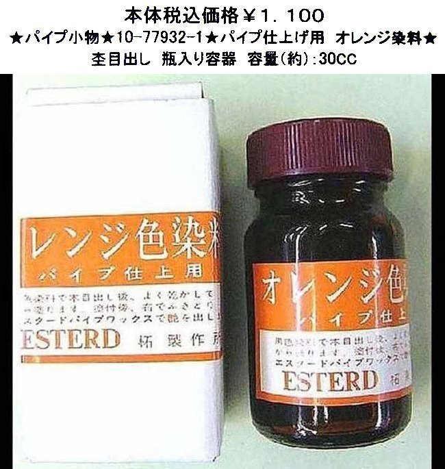 現物を写真撮影、お手元にこの写真の品が届きます。ハンドメイドパイプグッツ オレンジ色染料!!木目だしの後に使う、マホガニーと混ぜ合わす事も可能。ビンゴが出品している全ての商品は、店頭販売、他オークション販売、ショッピング販売等重複し販売しております。時間差で売れ切れや、出荷点検検等で傷が付いていたり破損している事もあります。従いまして、お買い上げ頂きましても出荷出来ない場合も有りますので、予めご了承の上お買い求め下さい。尚、同じ型の商品が取り寄せ可能の場合は、改めてその旨お伝え致し、ご了承の際は数日お待ち頂く事になります。ご注文商品は他商品と同梱配送出来ますので、何個ご注文されても送料は1口分です。1.レターパック発送 ¥600 日時指定不可。(郵便レターパック)。2.宅配便発送税込み ¥880日時指定必須(沖縄/離島は別途価格)。必ず 受取日時 をご指定下さい。(例:15日 18~20 時必着)再配達防止の為。 (業者は当社にお任せ)。3.代金引換発送引手数料税込み ¥1、210 日時指定必須(沖縄/離島は別途価格)。 必ず 受取日時 をご指定下さい。(例:15日 18~20 時必着)再配達防止の為。(業者は当社にお任せ)。