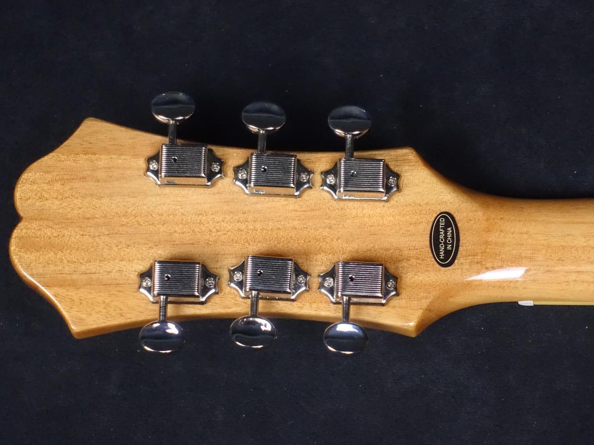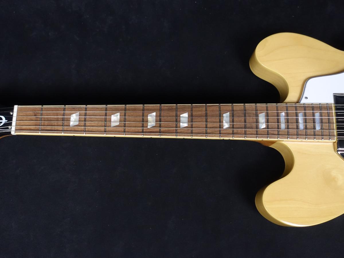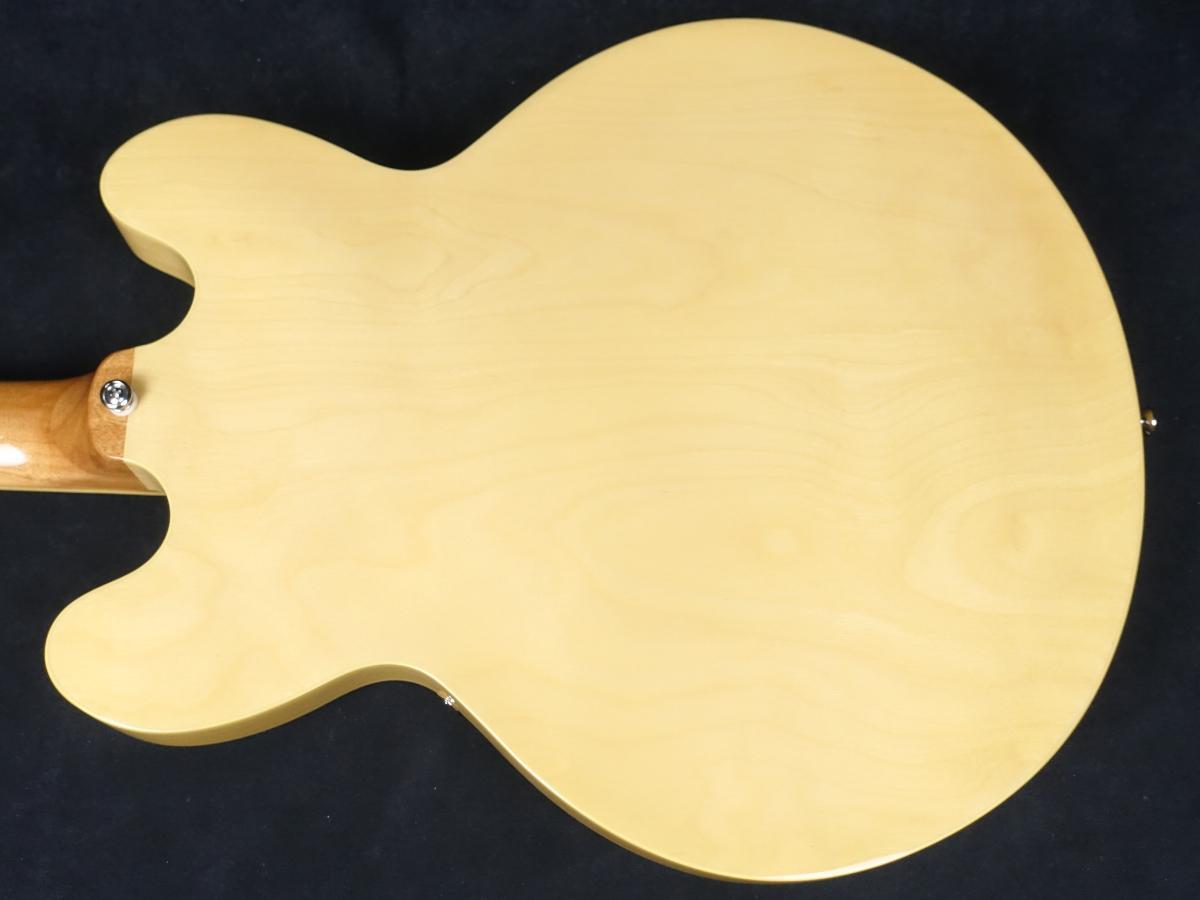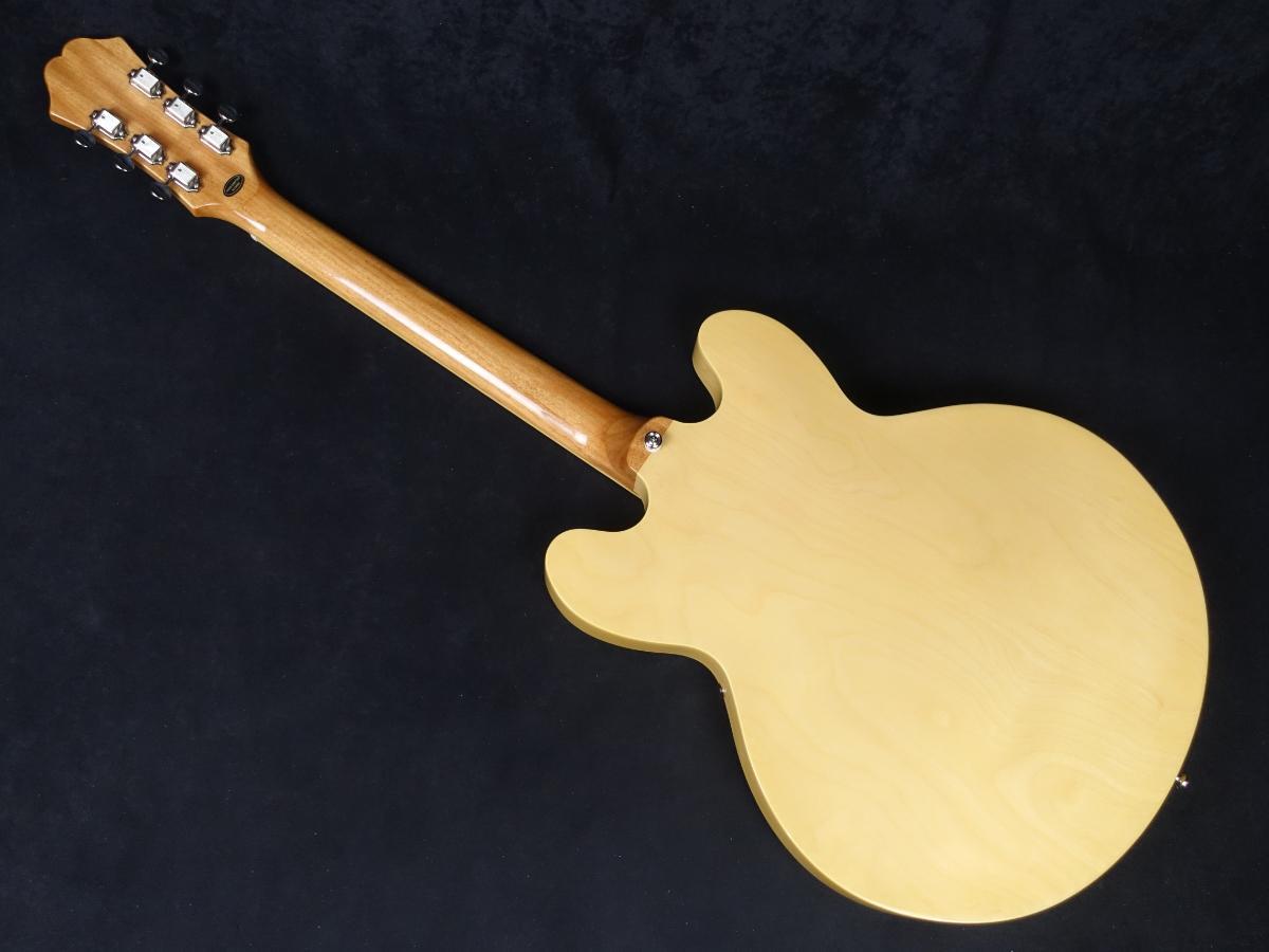 薄めのボディで一見セミアコに見えますが、センターブロックのないフルアコ構造で箱鳴り感が強いサウンドです。