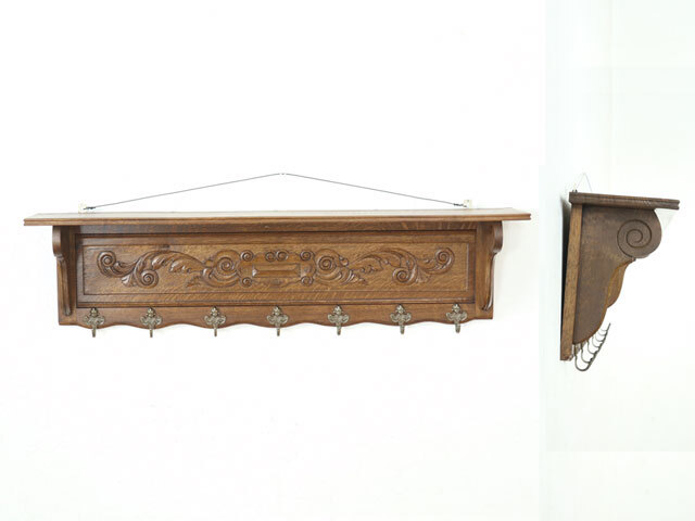 ウォールハンガー 壁掛け 7連 壁面をお洒落に演出 木製 植物モチーフの彫刻が素敵 オーク材の力強い杢目が印象的 壁面 オランダ 65298b