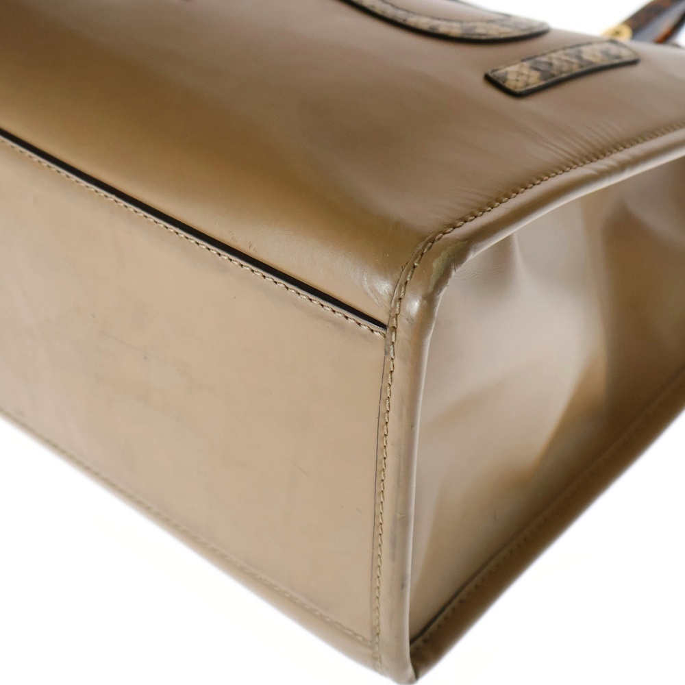 FENDI フェンディ SUNSHINE MEDIUM 8BH386 サンシャイン ミディアム レザー パイソン トートバッグ ブラウン