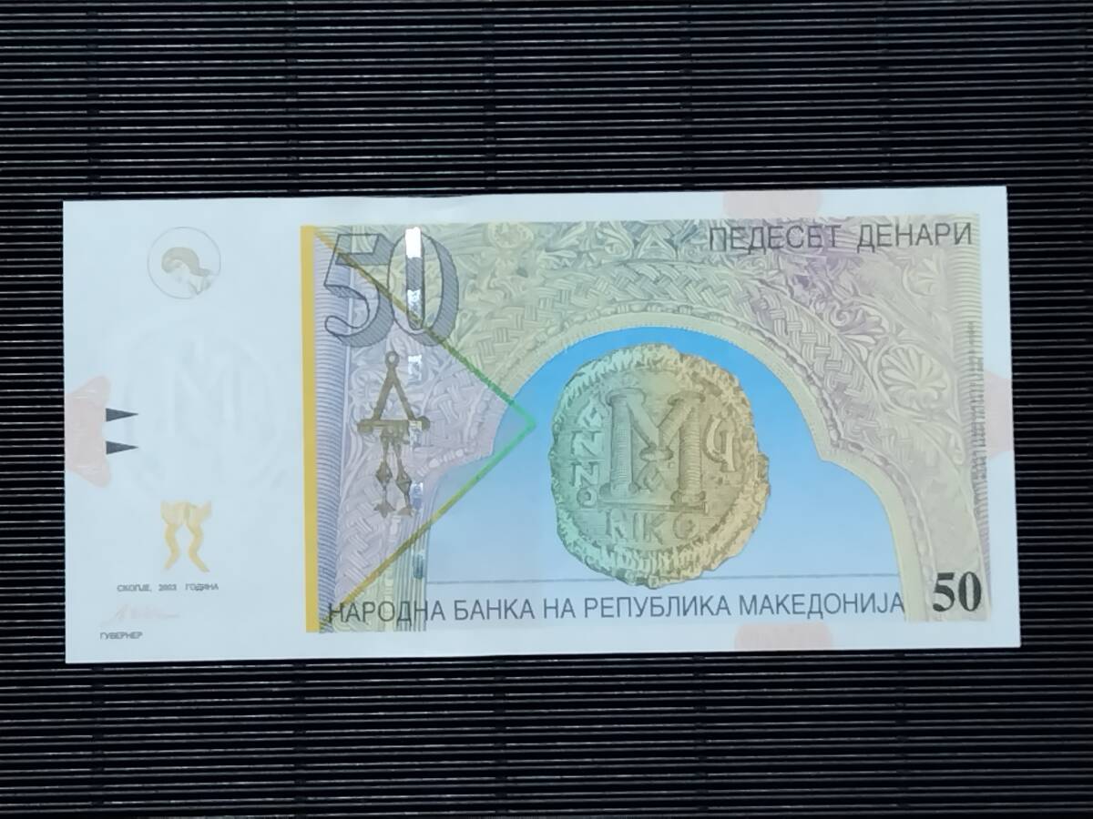 マケドニア 50 Denari札   コレクション向きのピン札 2003年1月 未使用~甘い未使用   大天使ガブリエル  p-15d #ЧЧ851807