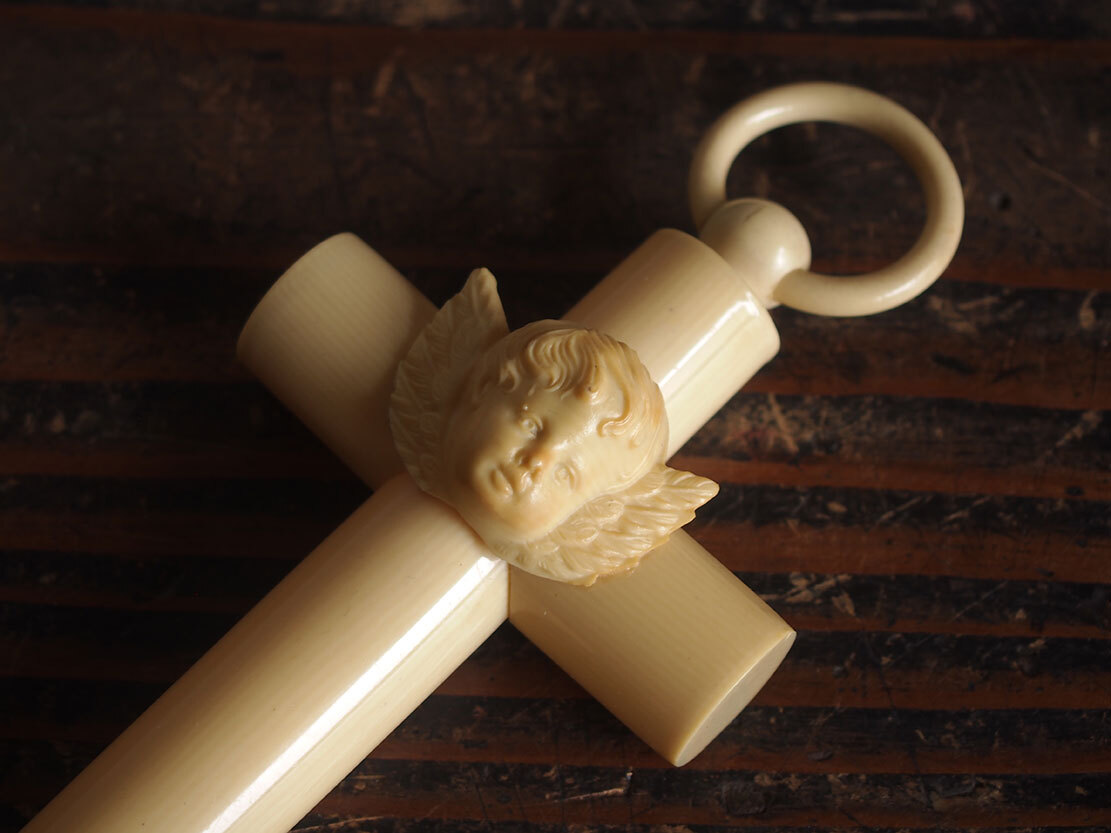 天使の十字架 ゆりかごに飾るお守りフランス 1930年 スーべニール 南仏 教会 アンティーク/K215 ●サイズ:全長17.3cm 十字架部分13.9cm×7.1cm×3.5cm 棒の直径2.1cm ●材質:樹脂(ガラリス: 牛乳を原料とした樹脂またはセルロイド) これはベビーベッドにつけるお守りです。材質はガラリスとは牛乳を原料とした樹脂で象牙の代替え品として使われたものです。1930年ぐらい?天使の顔が少し茶色に変色しています。特に目立つダメージはありません。古い物と言う事をご理解の上のご入札をお願い致します。 詳細は写真でご確認いただけます。古い物だと言う事をご理解の上のご入札をお願い致します。材質及び年代の判定は困難な場合があります、差異についてはあらかじめご了承下さい。 ー ー ー ー ー ー ー ー ー 記載にない方法での発送はいたしません。 発送をお急ぎのお客様にはご希望に添えない場合があります。 ー ー ー ー ー ー ー ー ー ●その他 ヤフオクの小さな写真では商品を詳細にご覧頂く事ができません。リンク写真で質感ダメージ等の写真を数多くアップしています。必ず全部の写真がよく見える環境でご覧下さい。本商品は時代を経た古い物です。写真や説明で記載できないようなキズやシミ、古い物特有の臭いのある物もあります。できる限り詳細に説明するよう努力しておりますが、ご理解頂ける方、神経質で無い方、埃によるアレルギー等の無い方のご入札をお願いします。 必ず当店の自己紹介欄と落札後の落札通知をご覧下さい。 土曜日曜日は基本的には定休日です。メール、質問への回答は月曜日にいたします。 ご連絡は落札後48時間以内にお願いします。ご連絡が無い場合はお客様都合によるキャンセルとさせて頂きます。落札から1週間(土日祝日含む)経過してもご入金が無い場合も同様といたします。ご注意下さい。 特に評価「0」の新規のお客様、および 私とのお取り引きが初めてのお客様は遅れる事の無い様にお願い申し上げます。 評価の悪いお客様のご入札は取り消す場合があります。 入札の取り消しおよびキャンセルは固くお断りいたします。 自己紹介欄には急な連絡事項等も記載してあります、ご入札前に必ずご覧下さい。落札後には『落札通知』の内容も必ずご確認ください。 当オークションをご覧下さりありがとうございました。 Accept Paypal payment |