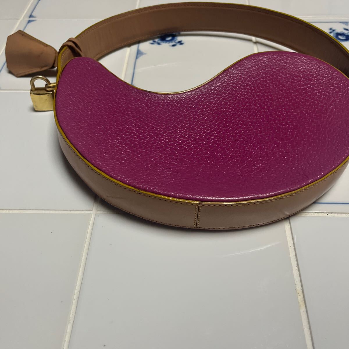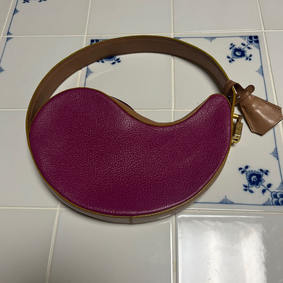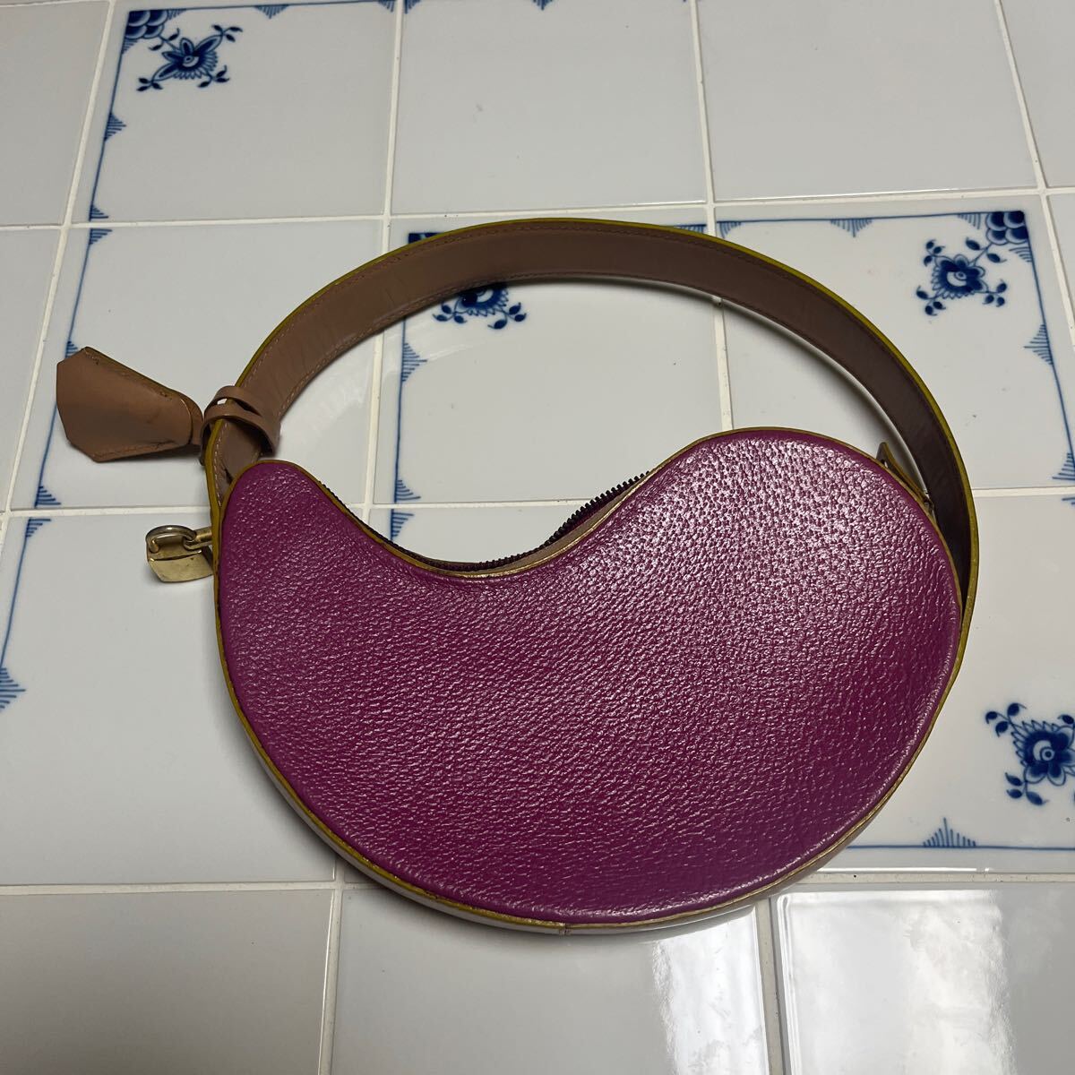 ETROのパープルのビーン型ハンドバッグ、金具付き。レア。