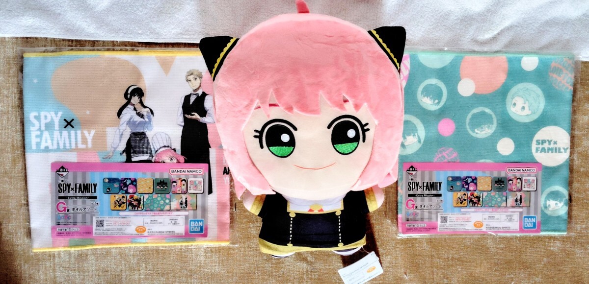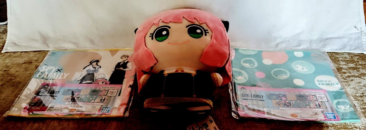 バンプレストのスパイ×ファミリーアーニャフォージャーのもっと大きくなったちびぬいぐるみとBANDAI一番くじG賞タオルアソート2点の合計3点セット景品用非売品になります。