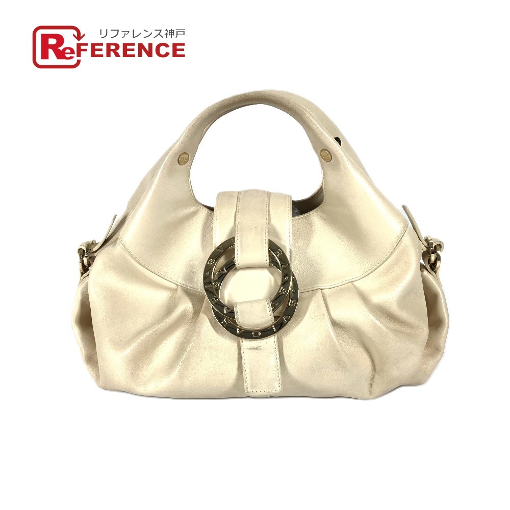 BVLGARI ブルガリ チャンドラ ロゴ カバン ハンドバッグ ベージュ レディース【中古】