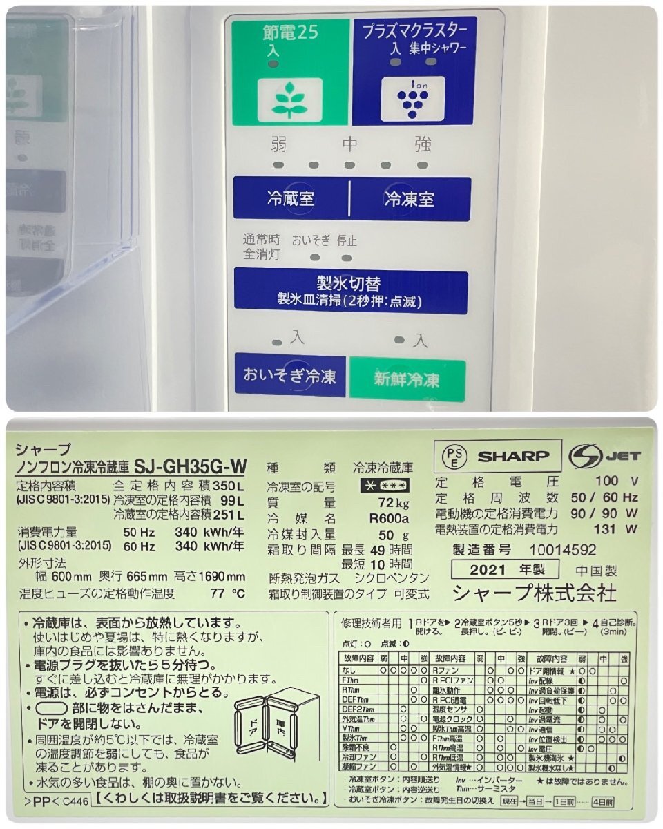| ■メーカー・・・SHARP シャープ ■型番・・・ SJ-GH35G-W ■年式・・・2021年製 ■色・・・ ピュアホワイト ■全定格内容量・・・・・ 350リットル ■幅・・・・・ 600mm ■奥行・・・ 665mm ■高・・・・・ 1690mm ■重量・・・ 72Kg ■シリアル・・・10014592 ※画像は撮影機器や閲覧機器により実際の色味と多少異なる場合がございます。 ※1枚目の画像はメーカーから取り入れたイメージ画像となる場合がございます。 ●●●●●●●●●● 商品番号Y1149 程度★★★( 2 番)★★★ ●●●●●●●●●● 1 美品・・・使用感がほとんどなく美品 2 良品・・・多少キズ等はあるが全体的には良い状態 3 並品・・・キズ等が多々あるが全体的には良い状態 4 並下・・・使用感ありキズ等もある 5 ジャンク品・・・何処かが故障していたり破損していたりする物 ※評価は個人的な主観で判断したものですで目安としてお考え下さい ※個々美的感覚が違いますので見方によっては傷になるものも有ります ●●●●●●●●●● 出品中の商品のご質問はこちらのアドレス宛に下さい tosholtd_big1@yahoo.co.jp システムの都合上、通常出品欄からのご質問には答えられませんのでご了承下さい。 ご質問の場合以下を例にして下さい メールタイトル欄に 質問 と入れてください。 本文に オークションタイトル 質問内容 を明記の上お問い合わせください。 ●●●●●●●●●● 商品状態 ■中古品 本商品は中古品です。 ●使用年数に応じたへこみ・汚れ・スレ傷・日焼けなどがある場合があります。 目立った傷やへこみに関しましては写真を参考にしていただければと思います。 ●当社ではクリーニング・動作確認・消毒などを行なった上でお届け致します。 また取りきれない汚れがある場合がございます。予めご了承ください。 付属品 【付属品について】 写真で確認できるものがすべてとなりますので確認をお願い致します。 ◆動作保証しておりますので、商品到着後3日以内に落札後の商品お取引画面から、 動作不良等の内容をメッセージ連絡頂きましたら、初期不良対応は致します。 但し、電源が入らない、全く稼働しない致命的な不具合に限ります。 | ||