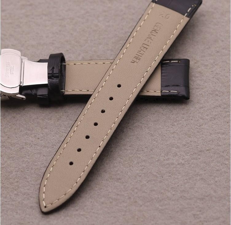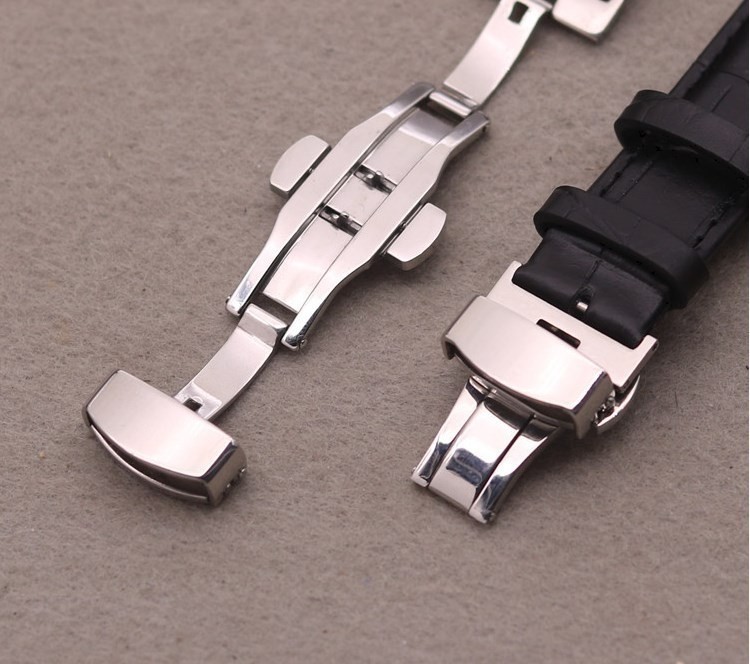 腕時計の取り外しが容易でベルトが傷みにくいプッシュボタン式Dバックル仕様です。