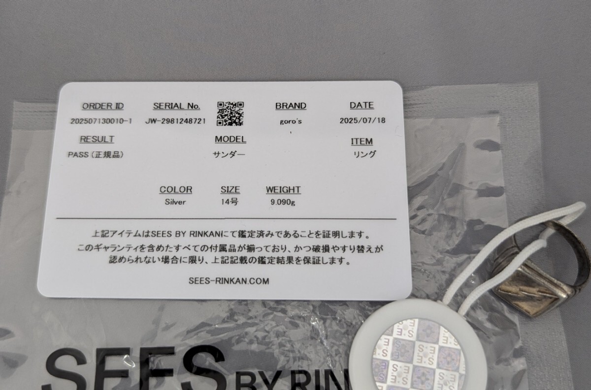goro`s SILVER Thunder 14.5号 ゴローズ シルバー SV サンダーリング 9.090g SEES BY RINKAN リンカン鑑定済み 中古