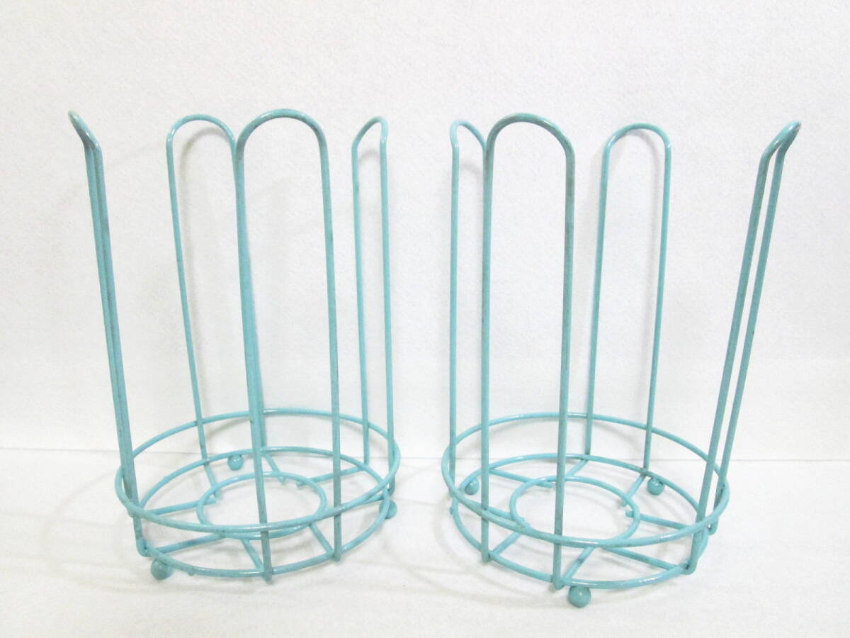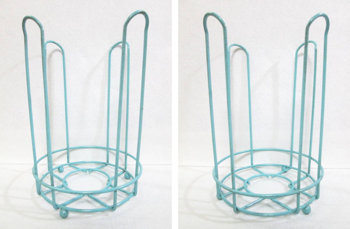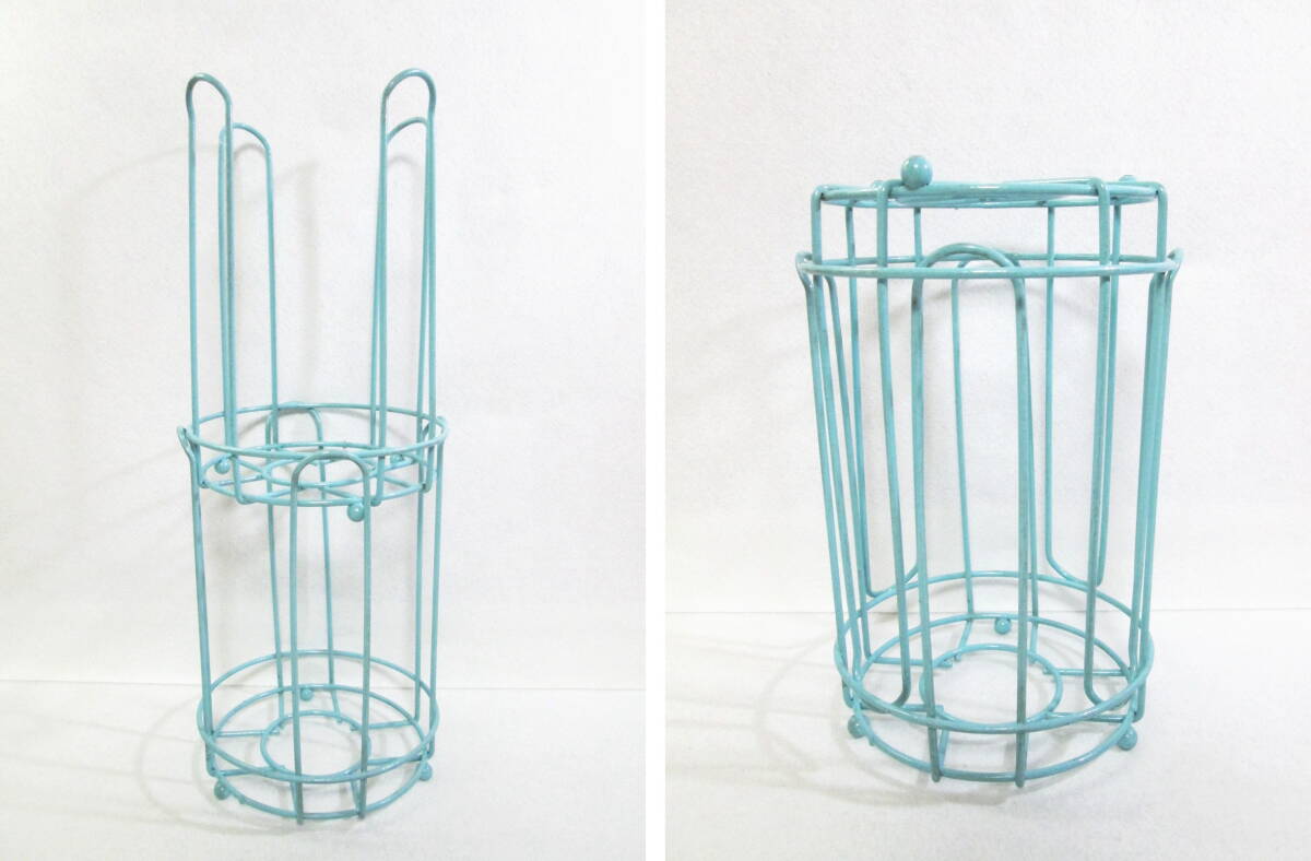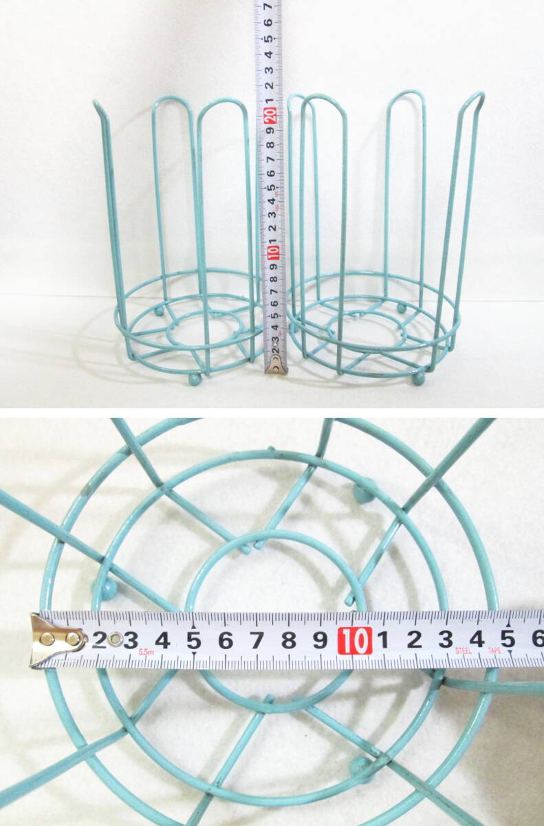 昭和レトロ ビニールワイヤー 水色 茶碗ホルダー 茶碗置き ※花や植物のプランター置きにも ②