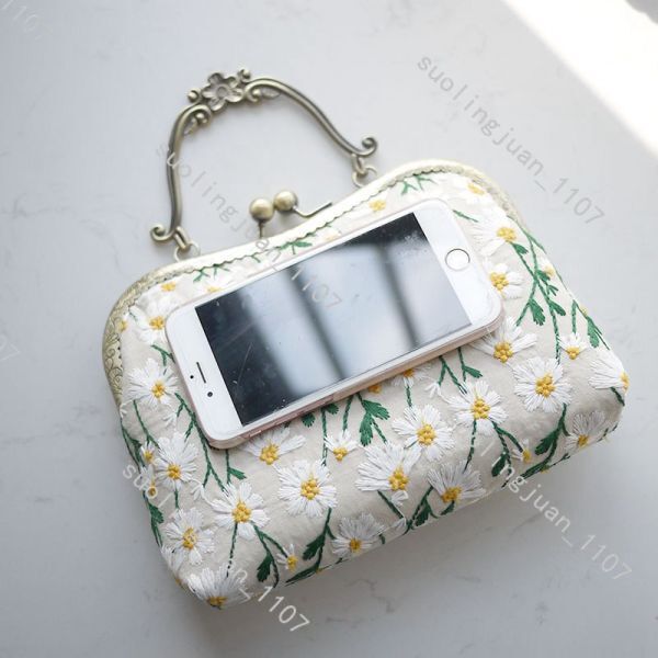 ハンドメイド 刺繍 バッグ ハンドバッグ 花の刺繍 #0058