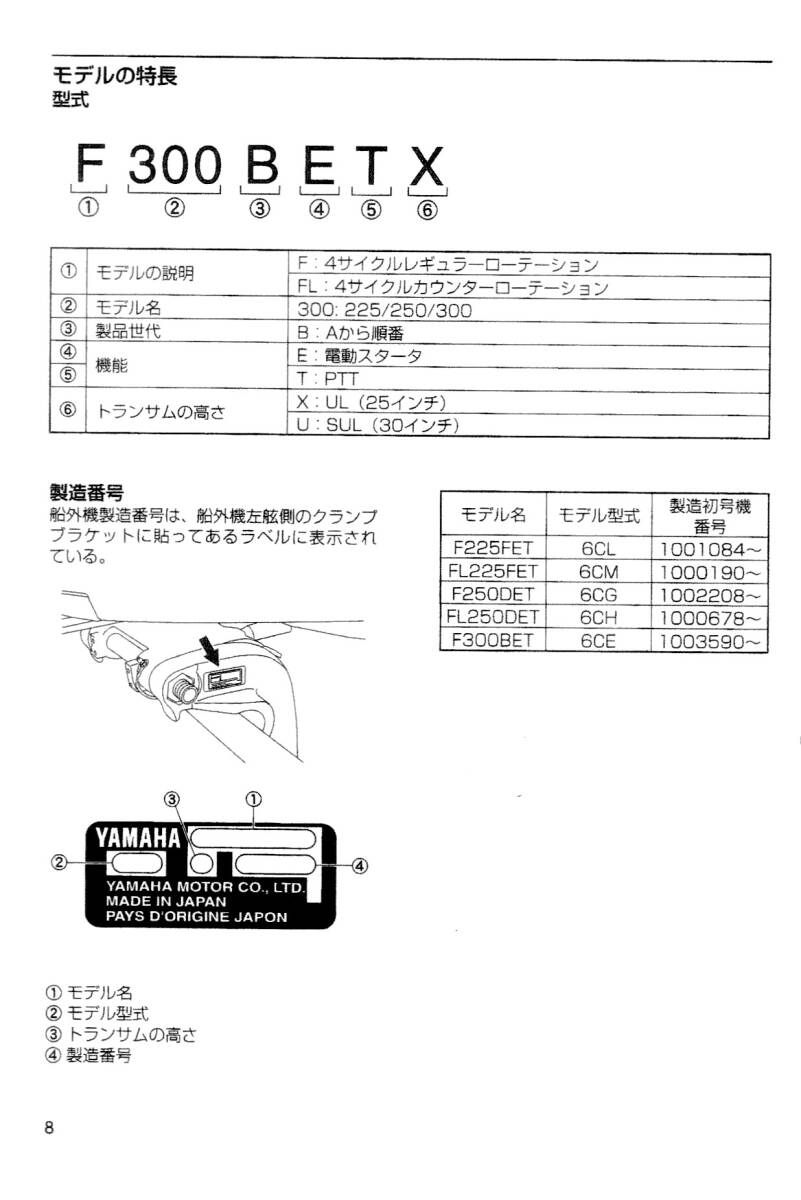 明細   YAMAHA ヤマハ 4サイクル船外機F225F~F300B サービスマニュアル 補足版