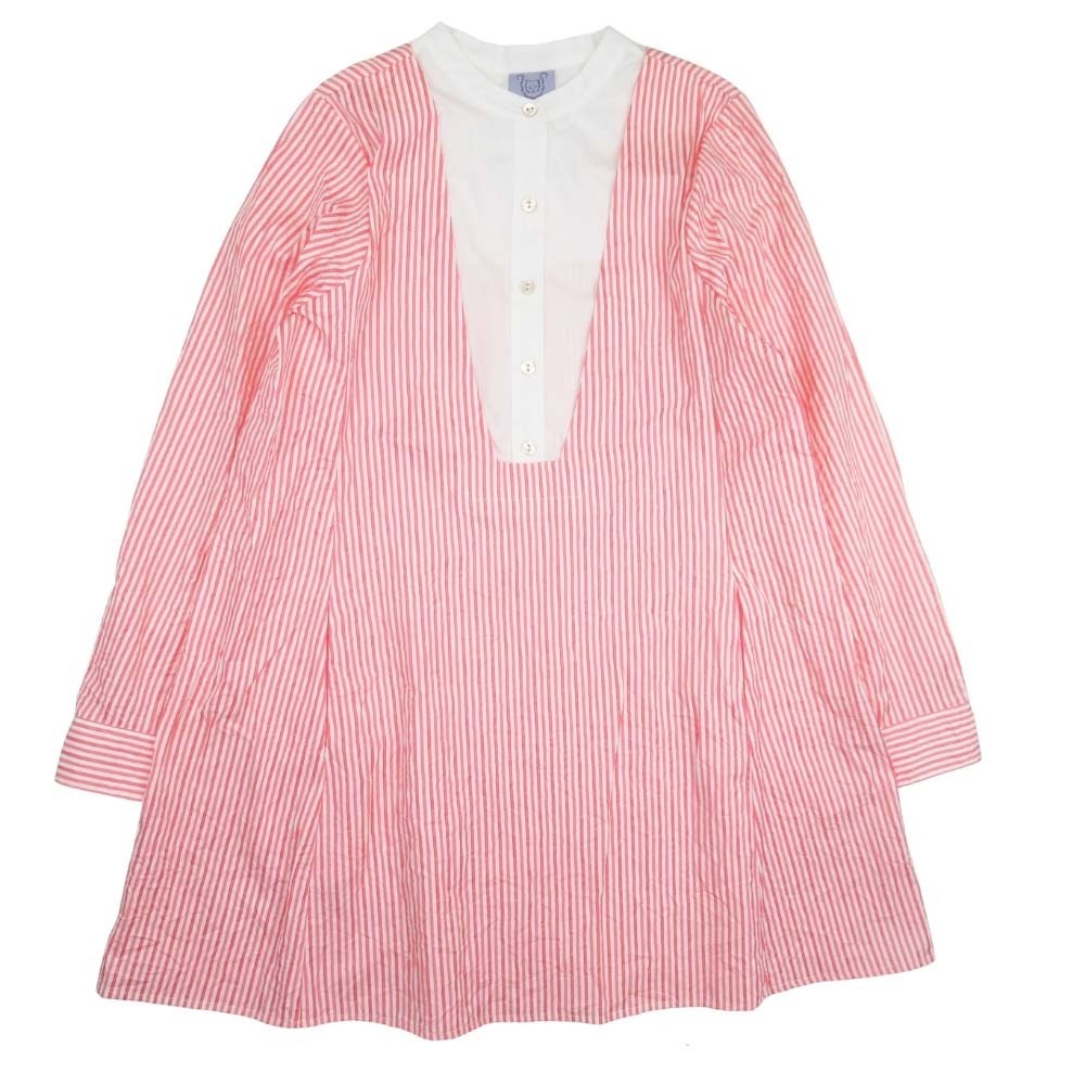 商品名:Thierry Colson ティエリーコルソン ストライプ レイヤード調 シャツワンピース 長袖 ドレス XS ピンク×ホワイト
