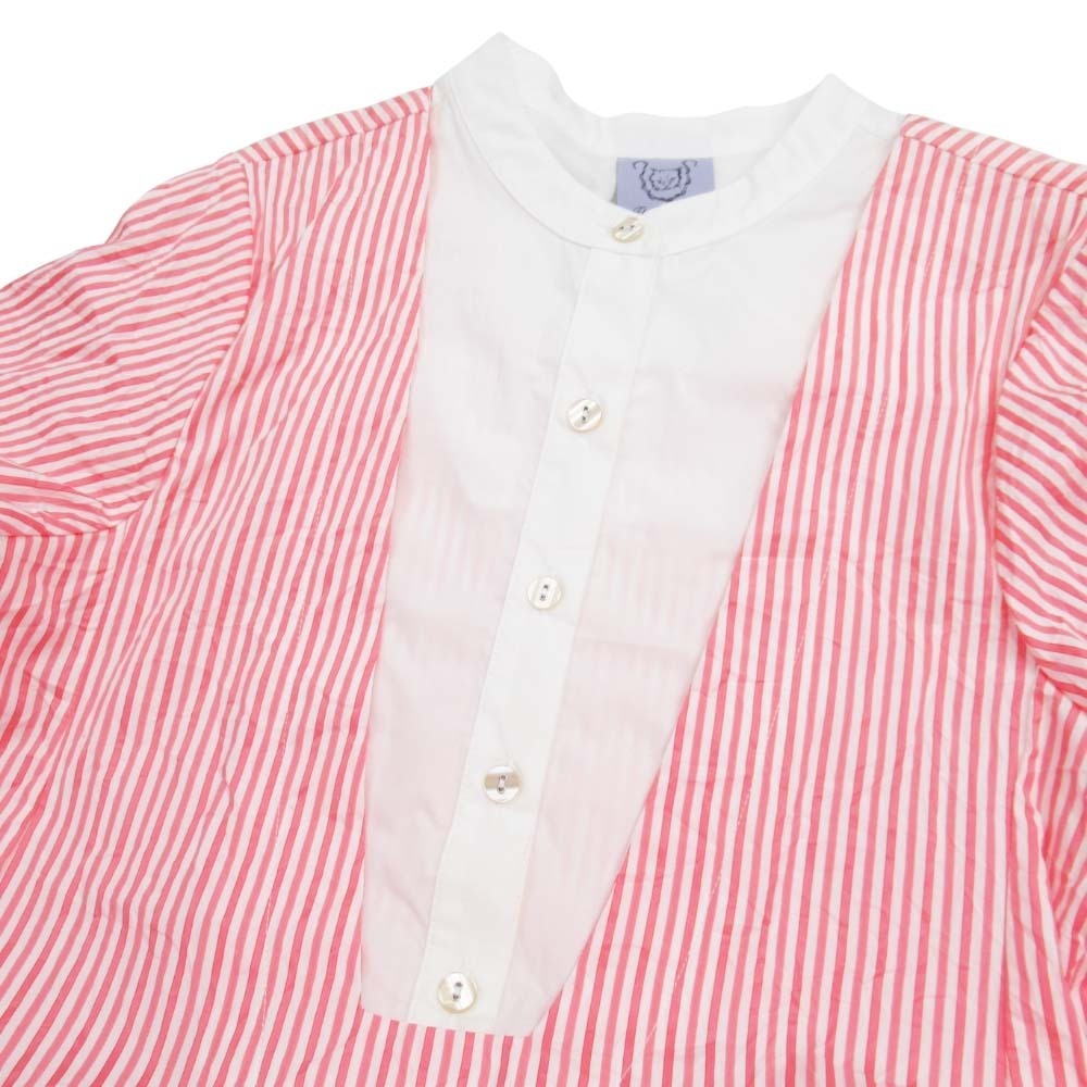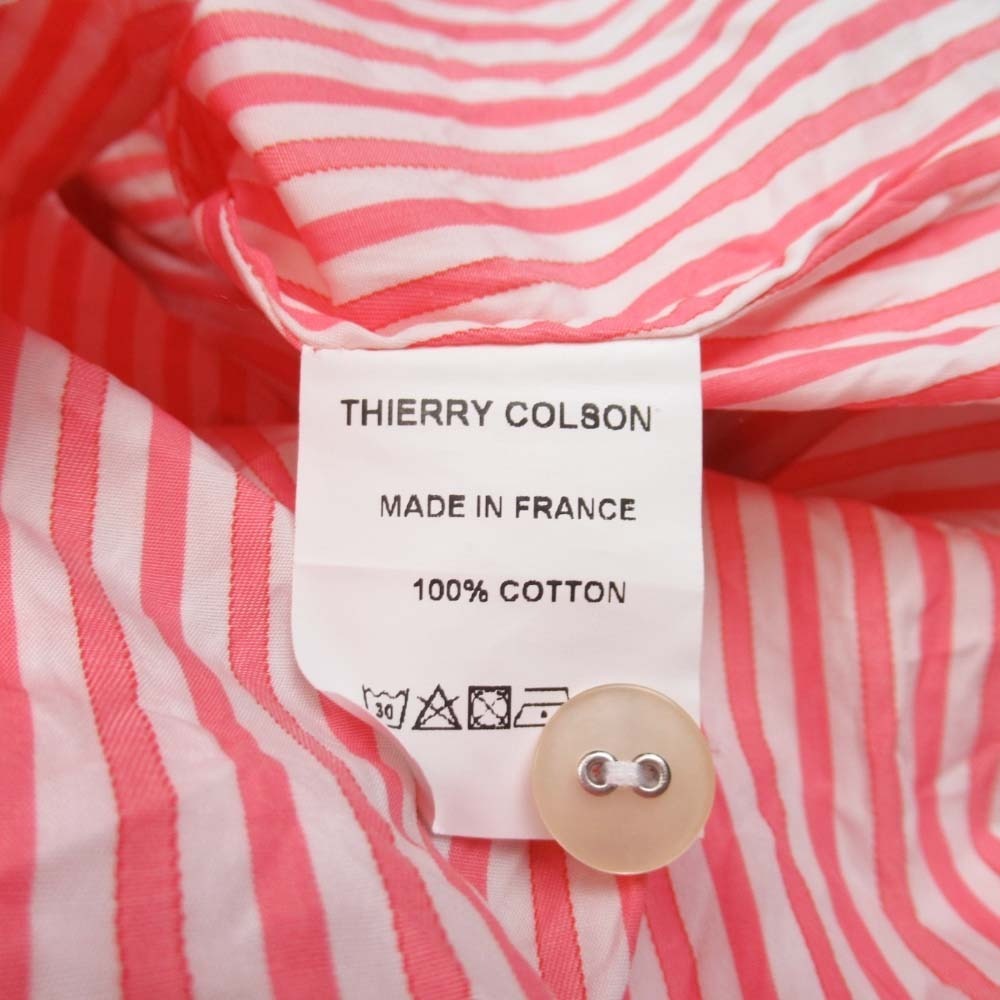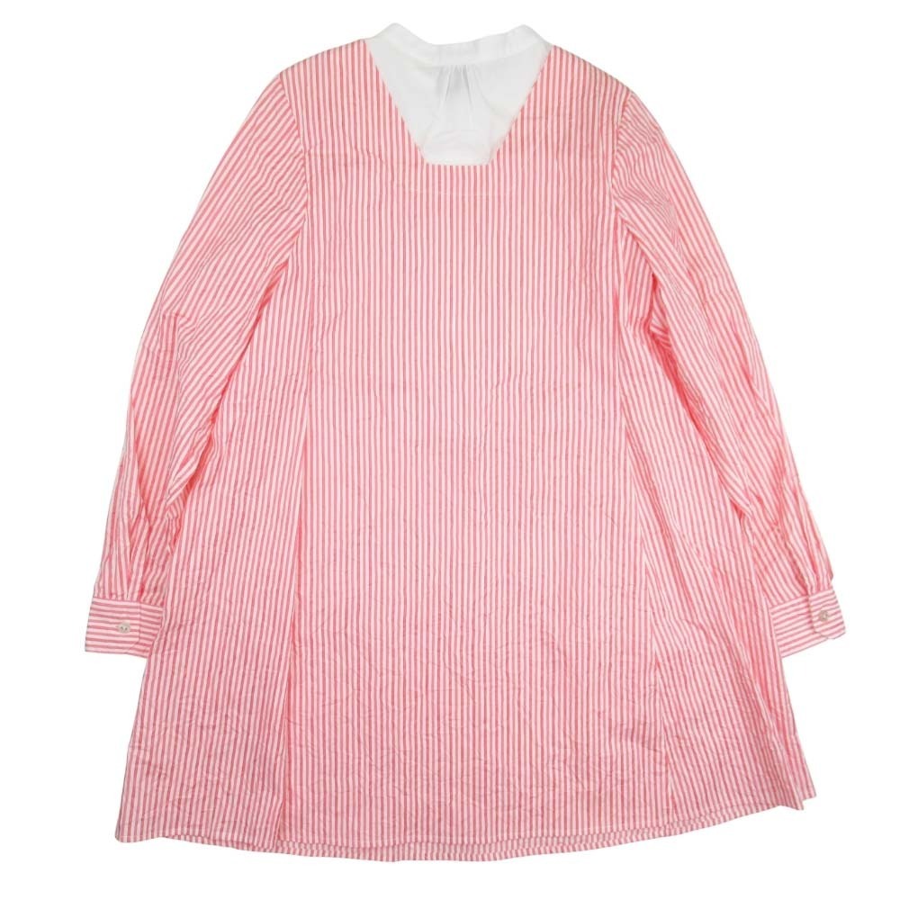 新品同様 Thierry Colson ティエリーコルソン ストライプ レイヤード調 シャツワンピース 長袖 ドレス XS ピンク×ホワイト