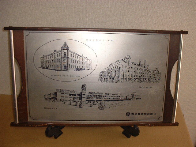 明治製菓 創立50年のお盆 社屋イラストなど 飾り皿 置物  非売品 レトロ
