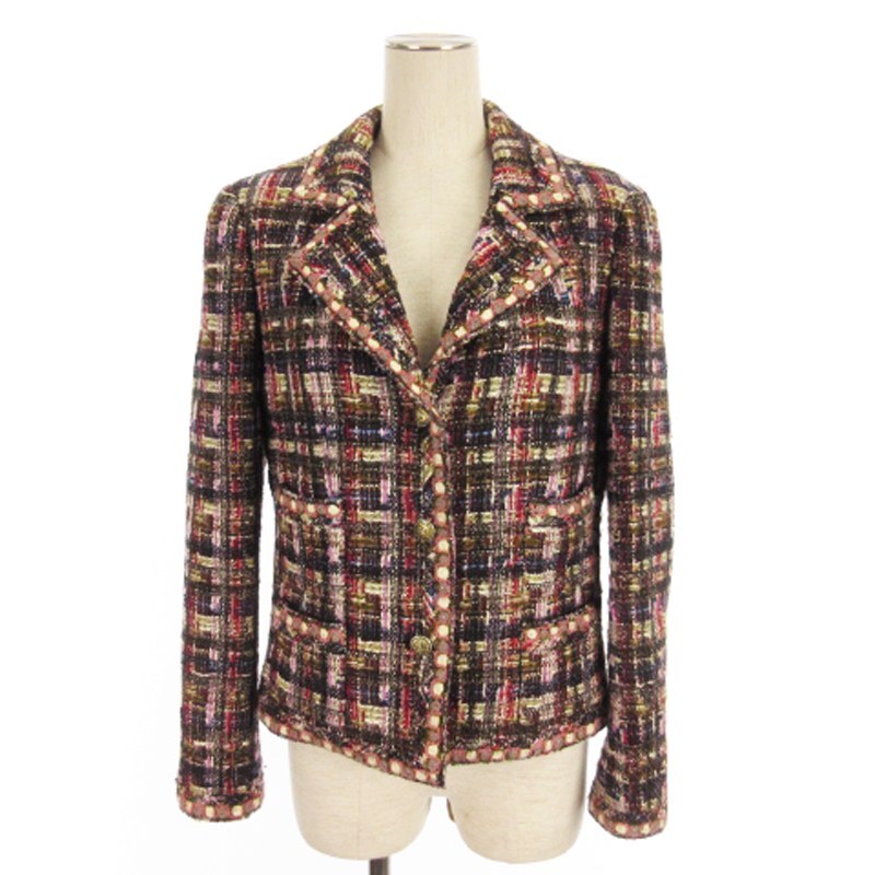 シャネル CHANEL 05A ツイード ジャケット ココマークボタン ウール シルク 3B P26325 マルチカラー 38 アウター レディース