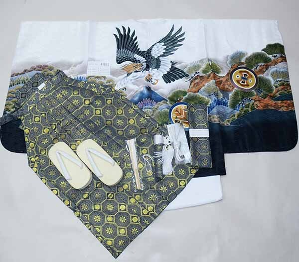 | 項目 | 五歳羽織袴フルセット ・羽織 ・着物 ・長襦袢 ・袴 ・草履 ・角帯 ・扇子 ・短剣 ・羽織紐 ・お守り |