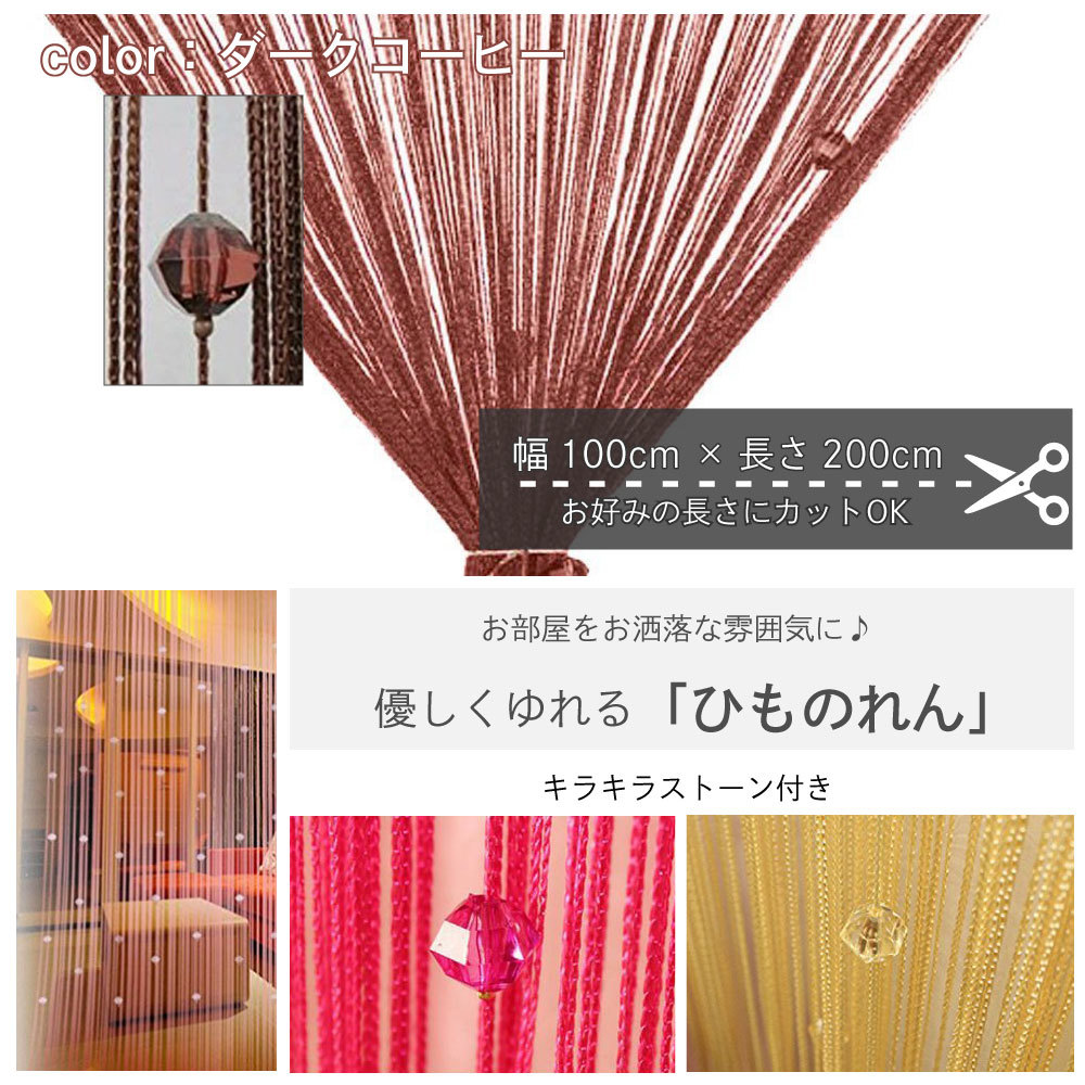 ひものれん 紐のれん ストーン付き ダークコーヒー