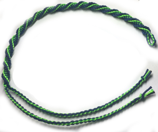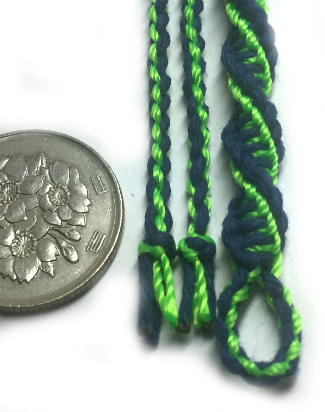 輪に分岐の1本を通し、もう一方と結んで留めるタイプです。