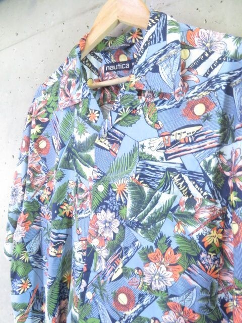 商品名90sヴィンテージ◆USA製◆nautica ノーティカ リゾート柄 半袖レーヨンアロハシャツ