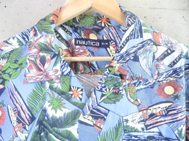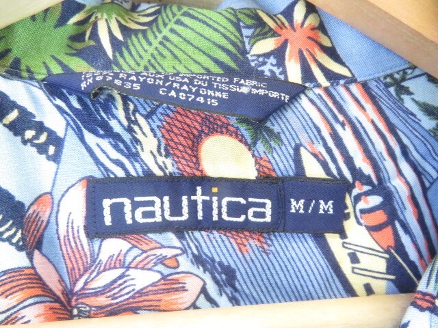 【送料300円可】8170b20◆90sヴィンテージ◆USA製◆nautica ノーティカ リゾート柄 半袖レーヨンアロハシャツ M/ハワイアン/かりゆし/古着