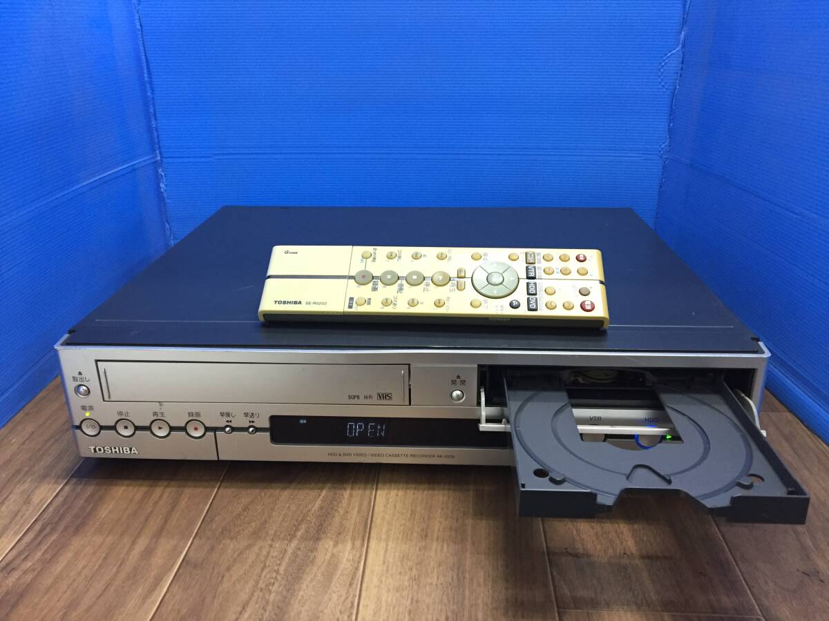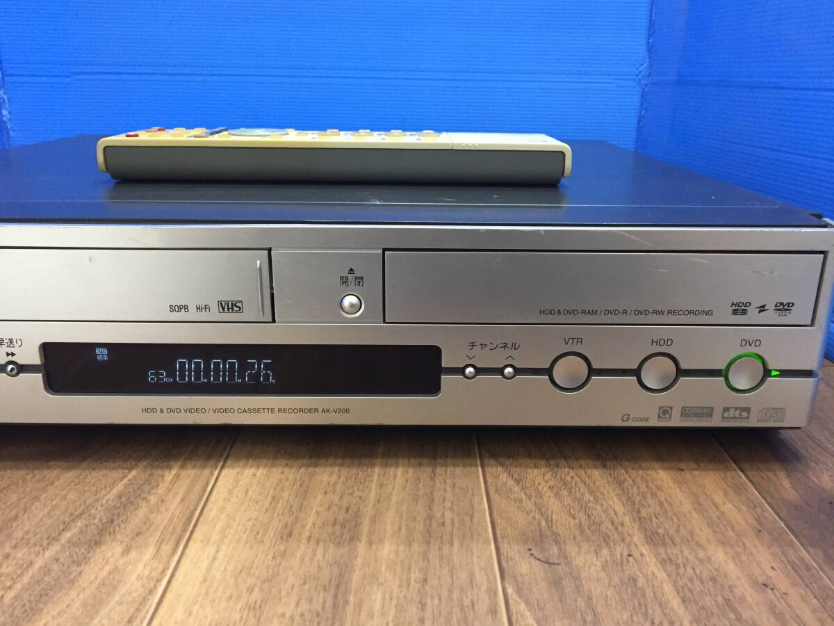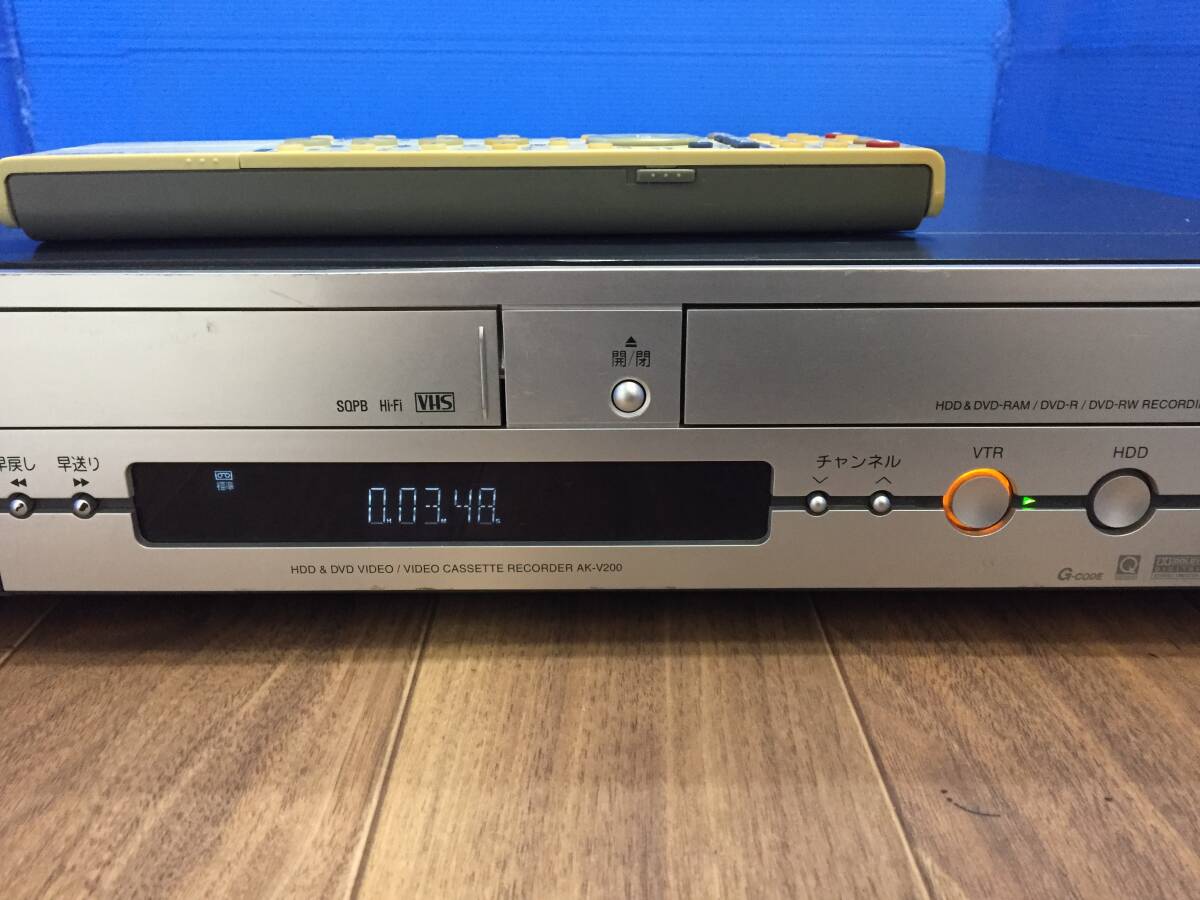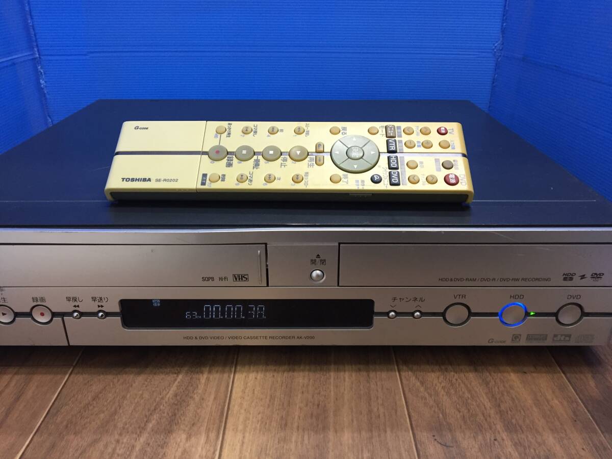 東芝 VTR一体型HDD&DVDビデオレコーダー AK-V200 純正リモコン付き 中古品8534