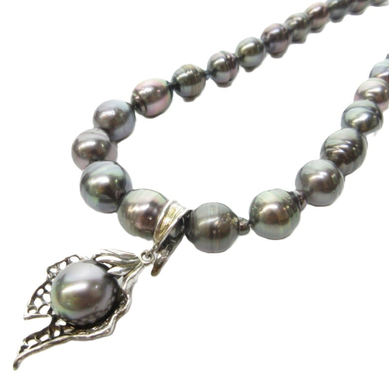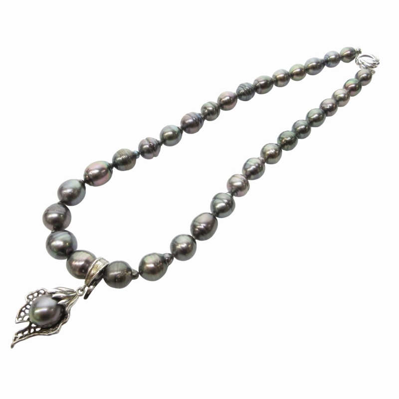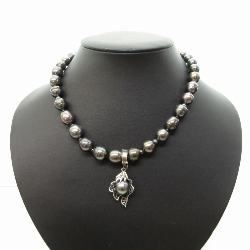 黒真珠 本真珠 ネックレス ペンダントトップ付き パール幅10.3mm 総重量57.4g 2WAY シルバー金具 黒 ブラック 0718 レディース