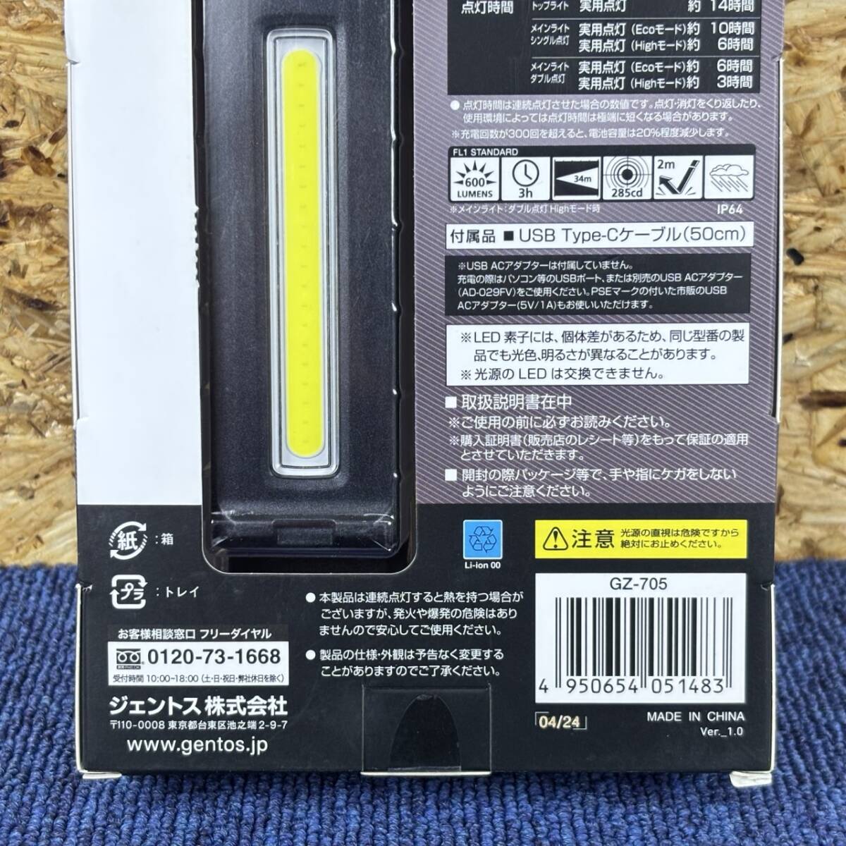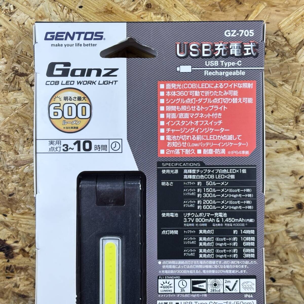 【新品未使用品】GENTOS ガンツ LEDワークライト 600ルーメン GZ-705 ジェントス ハイパワーバーライト LEDライト 作業灯 照明 A360