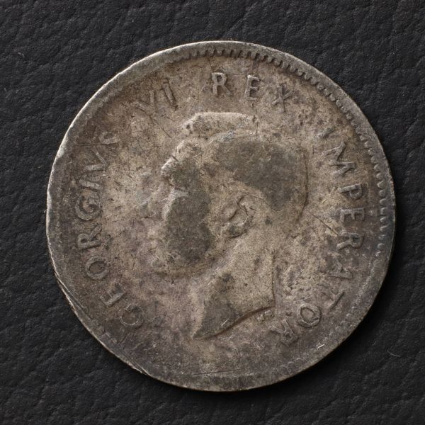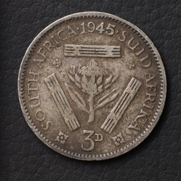 *[令]南アフリカ3ペンス銀貨(1945)1.414g、16mm[E6446]7b8
